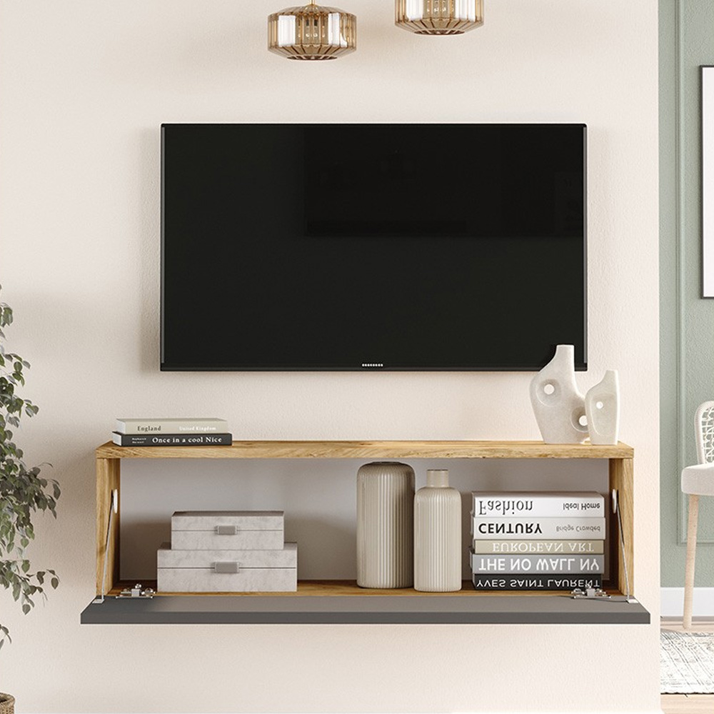 0381721 4 Έπιπλο τηλεόρασης επιτοίχιο Serit pakoworld ανθρακί-sonoma 100x31.6x29.6εκ
