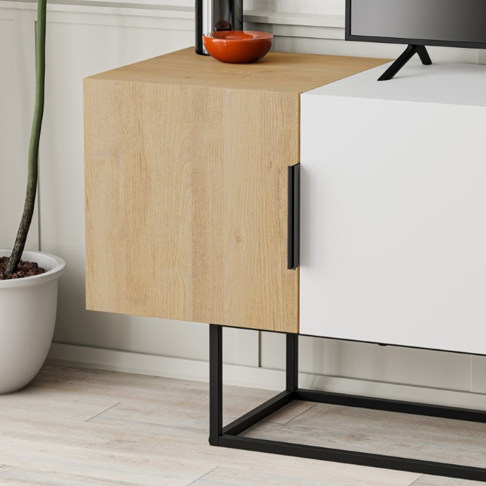 0381740 2 Έπιπλο τηλεόρασης Tontini pakoworld φυσικό-λευκό 140x37.5x55εκ