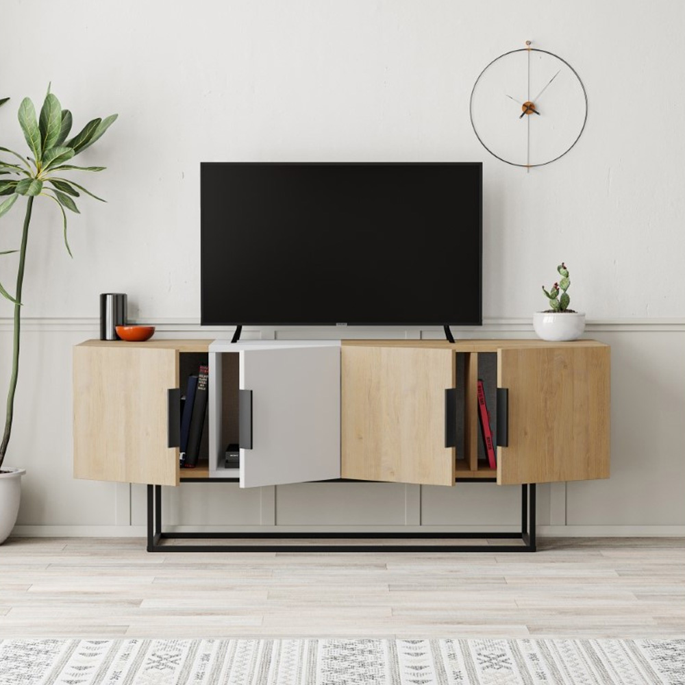 0381740 4 Έπιπλο τηλεόρασης Tontini pakoworld φυσικό-λευκό 140x37.5x55εκ