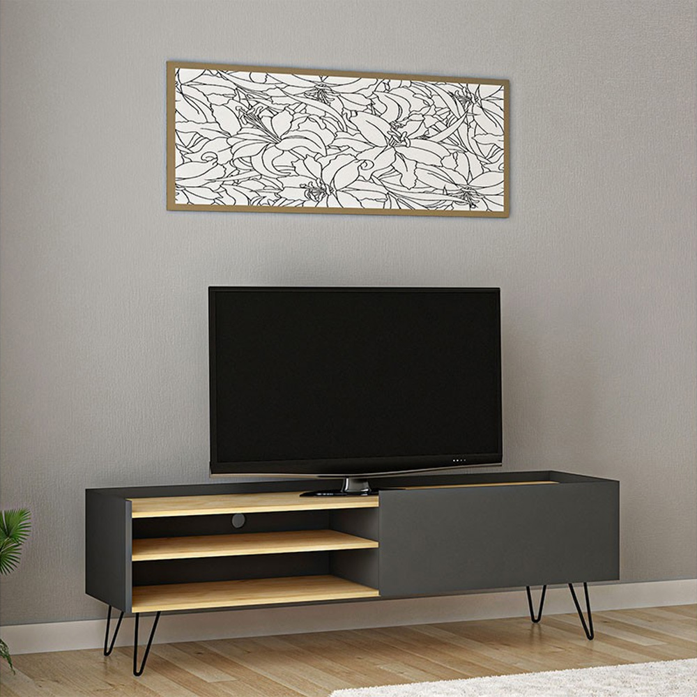 Έπιπλο τηλεόρασης Veronica pakoworld χρώμα ανθρακί-φυσικό 120x33x49,5εκ