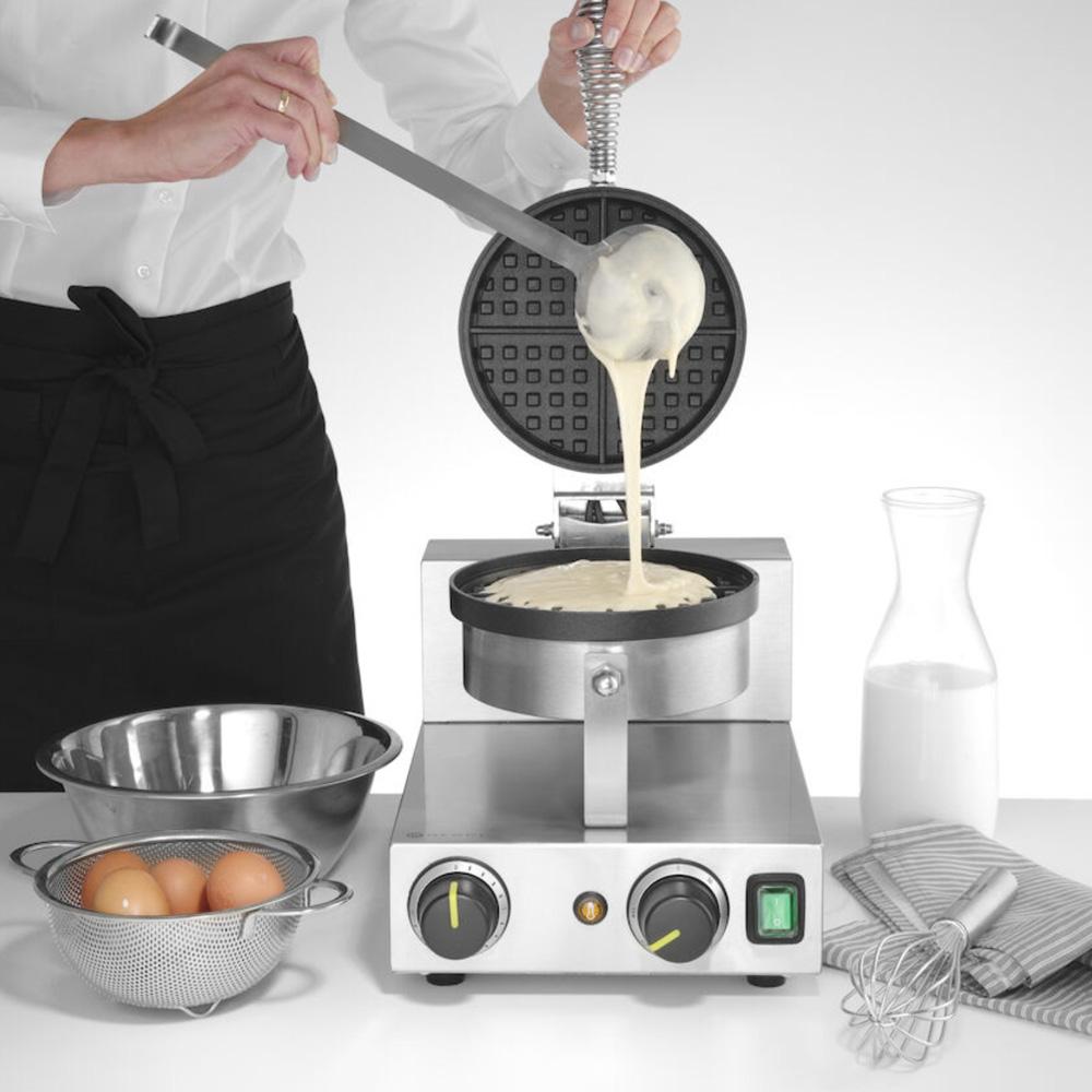 Επαγγελματική βαφλιέρα Ameican Style από την κορυφαία εταιρεία Hendi. Η μεταλλική επιφάνεια της συσκευής έχει εύρος διαμέτρου από 190mm έως 23mm, προσφέροντας τη δυνατότητα δημιουργίας βάφλας σε διαφορετικά μεγέθη. Οι πλάκες αλουμινίου είναι αντικολλητικές εξασφαλίζοντας το εύκολο σερβίρισμα της κάθε βάφλας. Ανακαλύψτε τα προϊόντα Hendi στο ηλεκτρονικό μας κατάστημα και βρείτε αξιόπιστες συσκευές που ανταποκρίνονται στις ανάγκες της επιχείρησής σας.