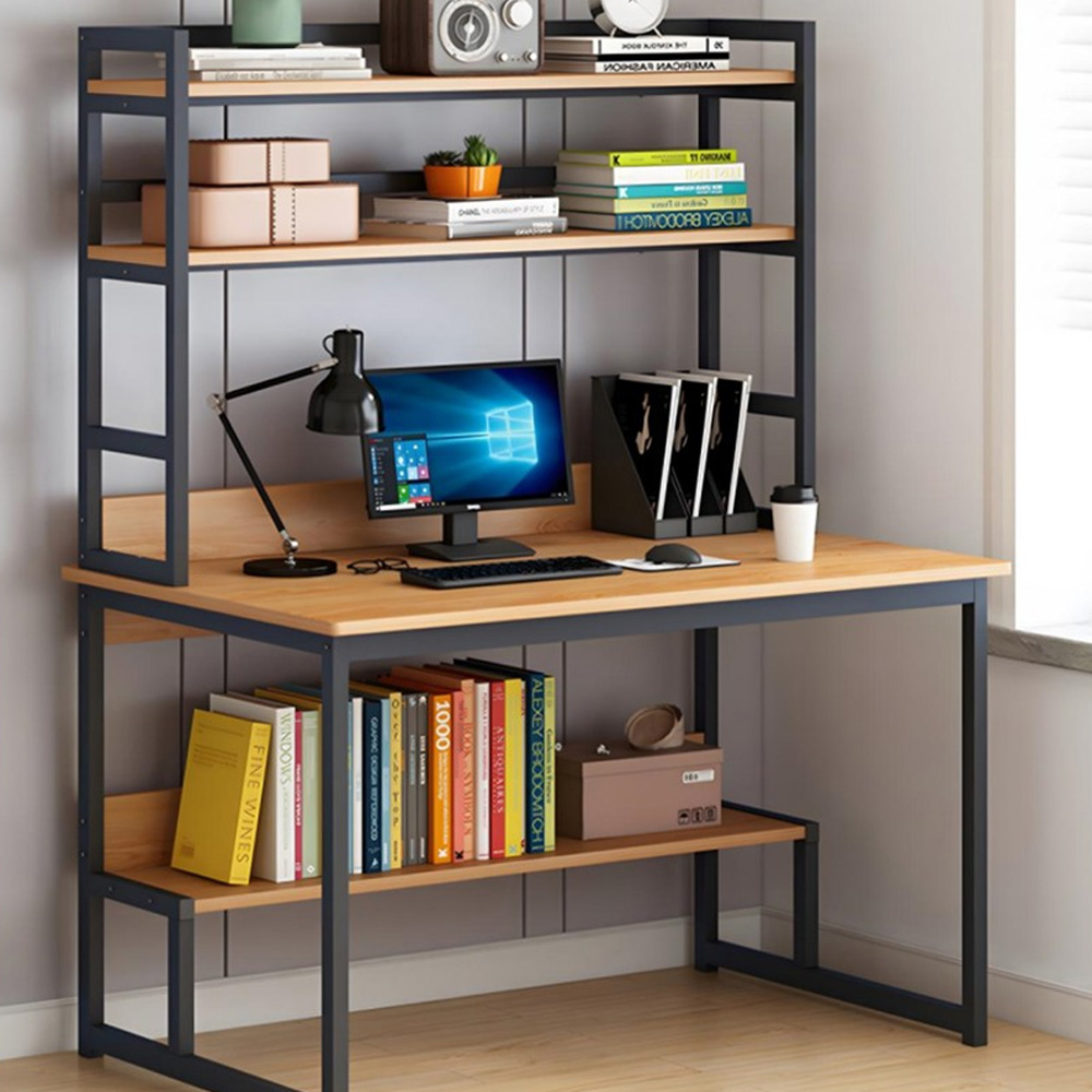 Γραφείο Με Ραφιέρα Damp Φυσικό – Μαύρο 100x60x154cm