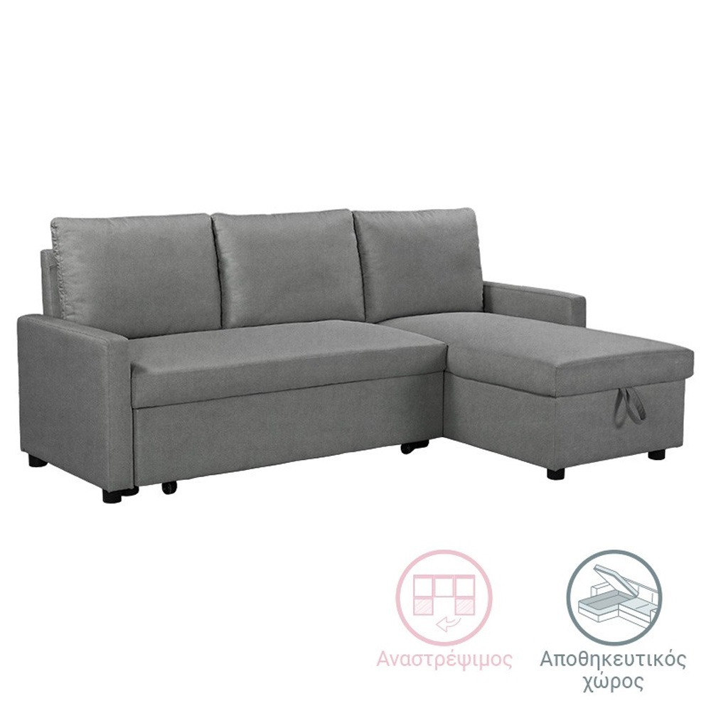Γωνιακός καναπές-κρεβάτι αριστερή γωνία Belle pakoworld ανθρακί 236x164x88εκ