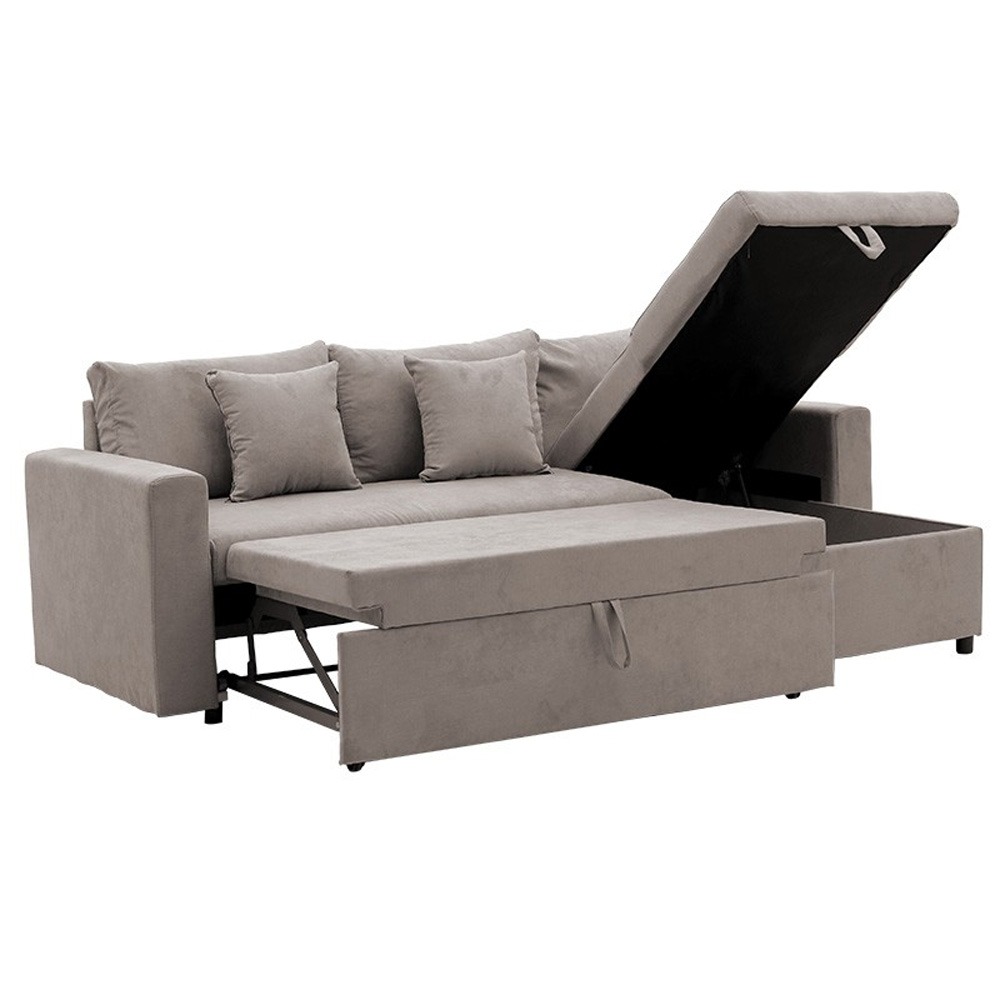 Γωνιακός καναπές-κρεβάτι αναστρέψιμος Lilian pakoworld ύφασμα γκρι 225x148x81εκ