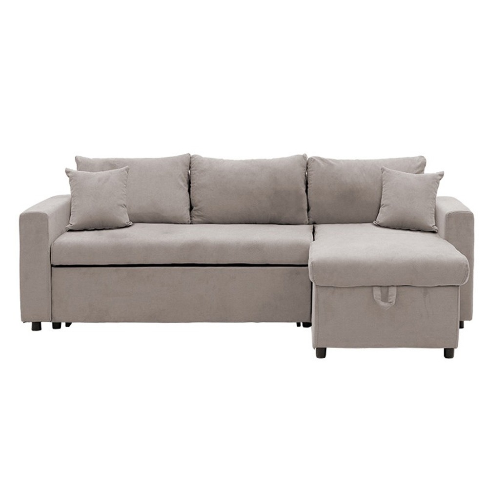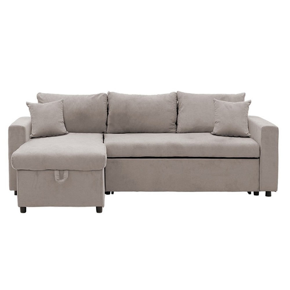 Γωνιακός καναπές-κρεβάτι αριστερή γωνία με αποθηκευτικό χώρο Lasy pakoworld ύφασμα σε εκρού απόχρωση 290x217x89εκ