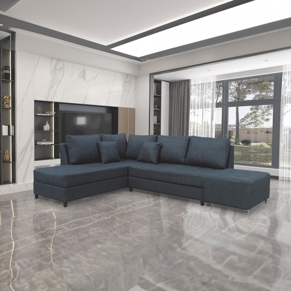 Γωνιακός καναπές-κρεβάτι αριστερή γωνία με αποθηκευτικό χώρο Lasy pakoworld ύφασμα σε ανθρακί απόχρωση 290x217x89εκ