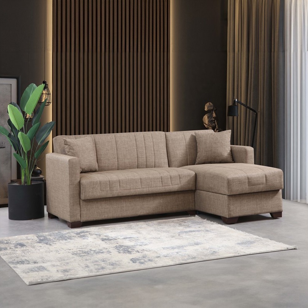 0381482 3 Γωνιακός καναπές-κρεβάτι με αποθηκευτικό χώρο Alasko pakoworld μπεζ ύφασμα 204x143x83εκ