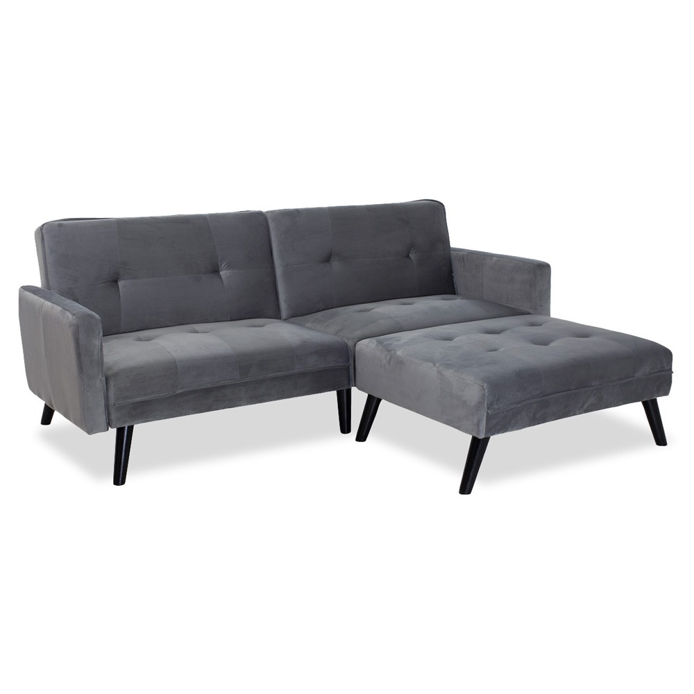 Γωνιακός καναπές-κρεβάτι με σκαμπό Dream pakoworld γκρι-ασημί βελούδο 209x157x80εκ