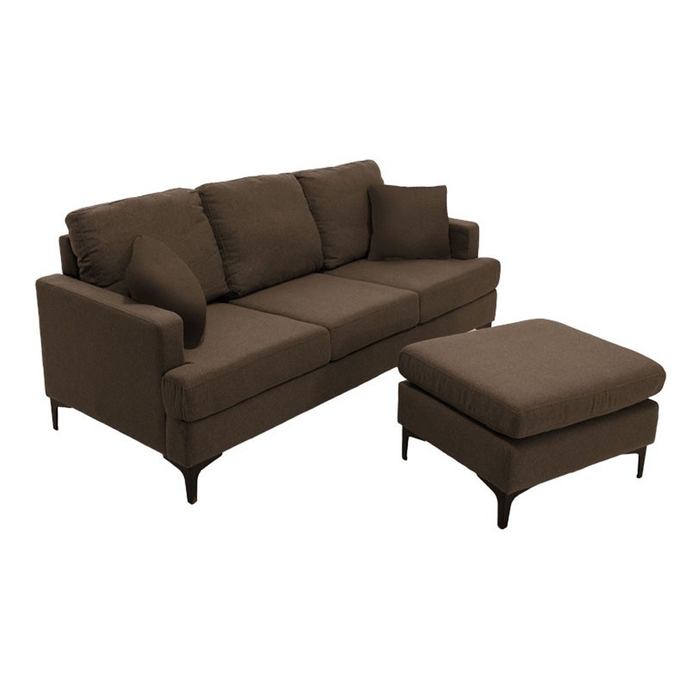 0381478 1 Γωνιακός καναπές με σκαμπό Slim pakoworld υφασμάτινος χρώμα καφέ με μαξιλάρια 185x140x70εκ