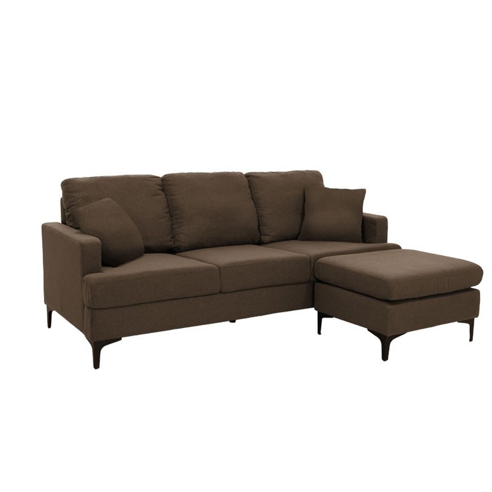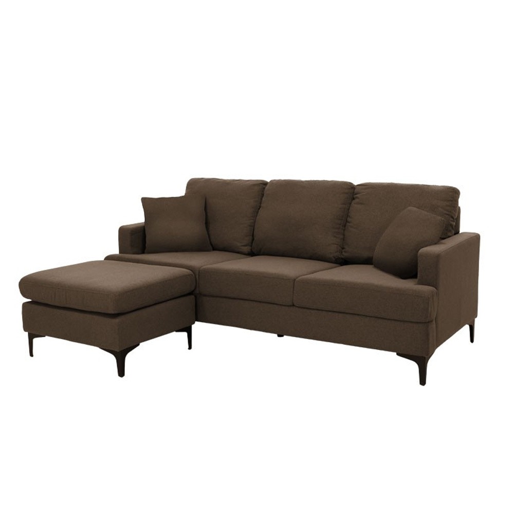 0381478 7 Γωνιακός καναπές με σκαμπό Slim pakoworld υφασμάτινος χρώμα καφέ με μαξιλάρια 185x140x70εκ