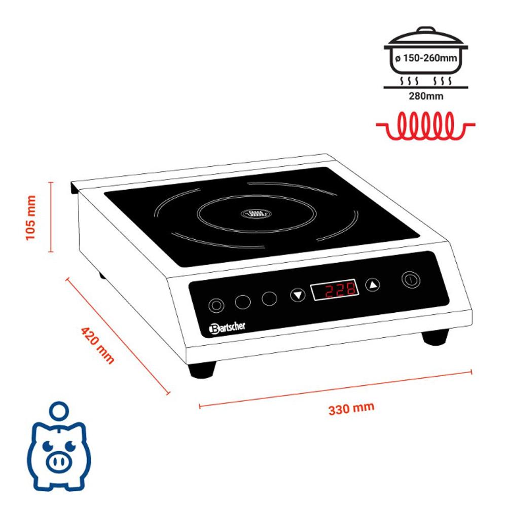 Μονή Επαγωγική Εστία Ηλεκτρονική 3,5kW 30x42x10,5cm Bartscher 105924