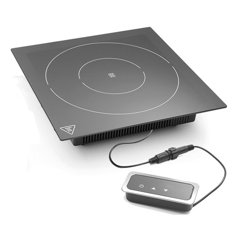 Επαγωγική εστία τετράγωνη. Πρόκειται για επιφάνεια από μαύρο κρύσταλλο και πλαστικό περίβλημα. Η ισχύς ρυθμίζεται σε 10 διαβαθμίσεις – ηλεκτρονική προστασία από την υπερθέρμανση. Διαθέτει πίνακα ελέγχου με οθόνη LED και πλήκτρα αφής – ανάρτηση και σε πάγκο. Χρησιμοποιείται και ως θερμαντικό για chafing dish.