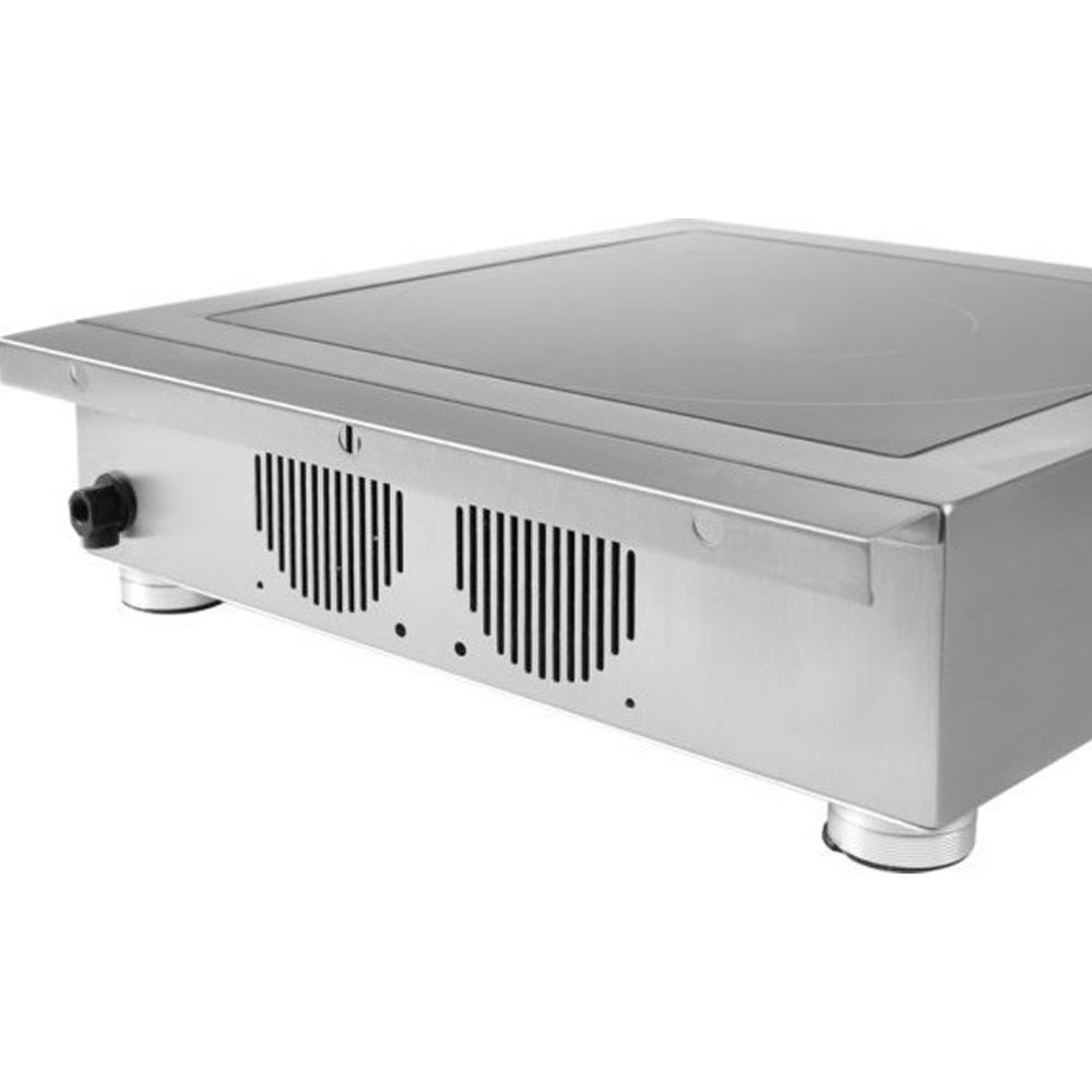 Ψηφιακή ρύθμιση ισχύος, θερμοκρασίας και χρονομέτρου με πλήκτρα αφής. Περίβλημα από ανοξείδωτο ατσάλι. Φίλτρο λίπους με εύκολο καθάρισμα και διπλό σύστημα εξαερισμού. Κατάλληλη για σκεύη Φ140mm έως 380mm. Πόδια με ρυθμιζόμενο ύψος. Ισχύς: 3500W / 230V