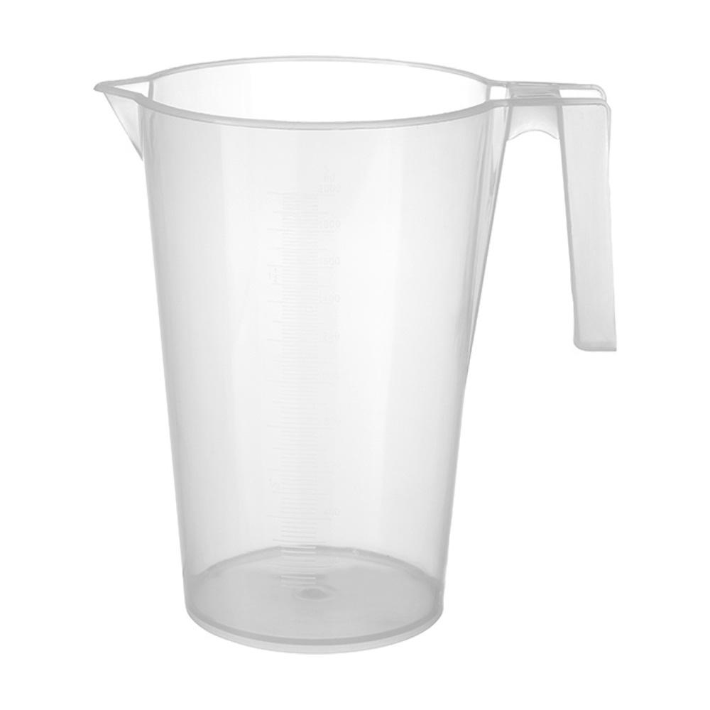 Στοιβαζόμενη κανάτα μέτρησης 2 L. Ανάγλυφη δοσομετρική διαβάθμιση στο πλευρό της κανάτας. Το σχήμα της λαβής επιτρέπει στις κανάτες να στοιβάζονται.