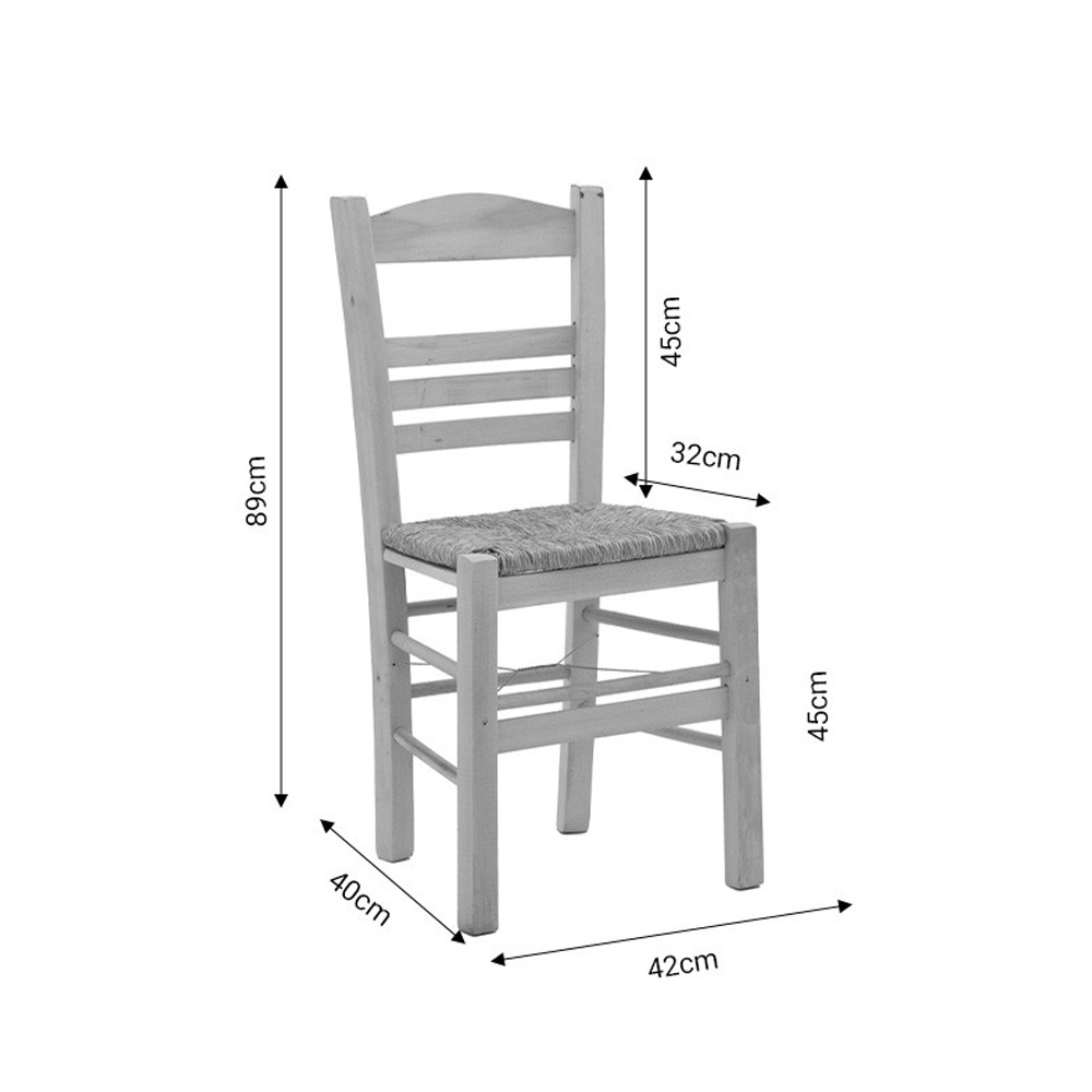 * Περιέχει ψάθα εξαιρετικής ποιότητας. Η ψάθα προσφέρει φυσική διαπνοή και άνεση στο κάθισμα, ενώ ταυτόχρονα προσθέτει ένα ιδιαίτερο στυλ στην εμφάνιση της καρέκλας. Η φυσική της παρουσία μπορεί να δημιουργήσει μια ευχάριστη αίσθηση εναρμόνισης με το φυσικό περιβάλλον, καθιστώντας την ιδανική για έναν άνετο και φιλόξενο χώρο καφενείου.