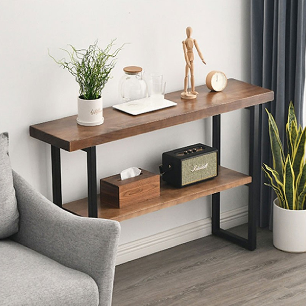 Κονσόλα Nore pakoworld φυσικό ξύλο 35mm καρυδί-μαύρο 79x29x85εκ