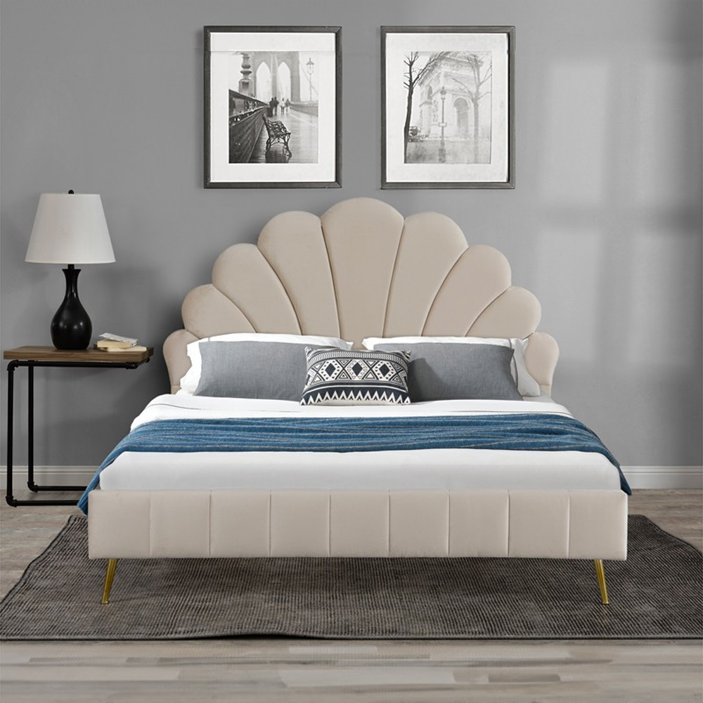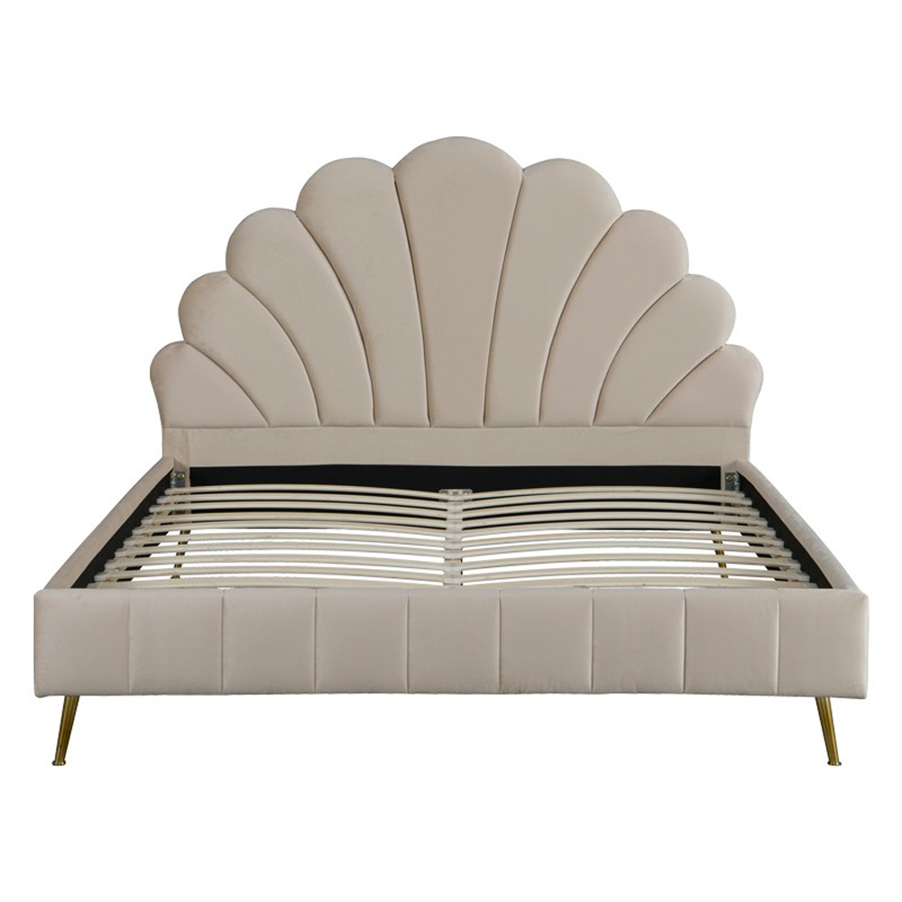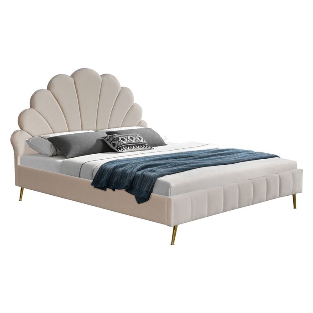 0381564 5 Κρεβάτι διπλό Felas pakoworld βελούδο μπεζ 160x200εκ