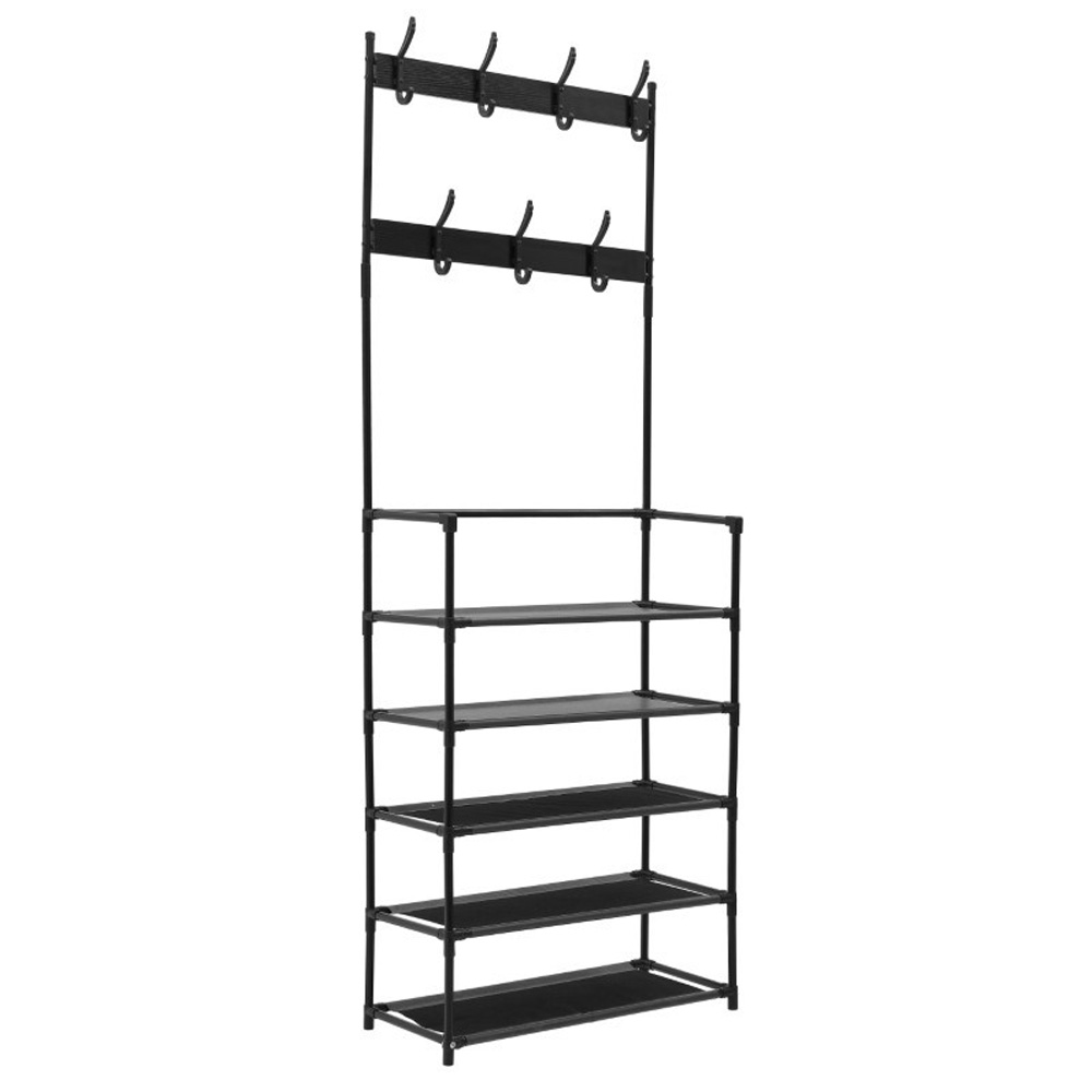 Η συνδυασμένη λειτουργικότητα της κρεμάστρας και της παπουτσοθήκης επιτρέπει την εξοικονόμηση χώρου και την οργάνωση των παπουτσιών σας με άνεση. Επιπλέον, η κρεμάστρα μπορεί να χρησιμοποιηθεί για την αποθήκευση σκουφιών, κασκόλ, ή οποιουδήποτε άλλου αξεσουάρ που θέλετε να κρεμάσετε.