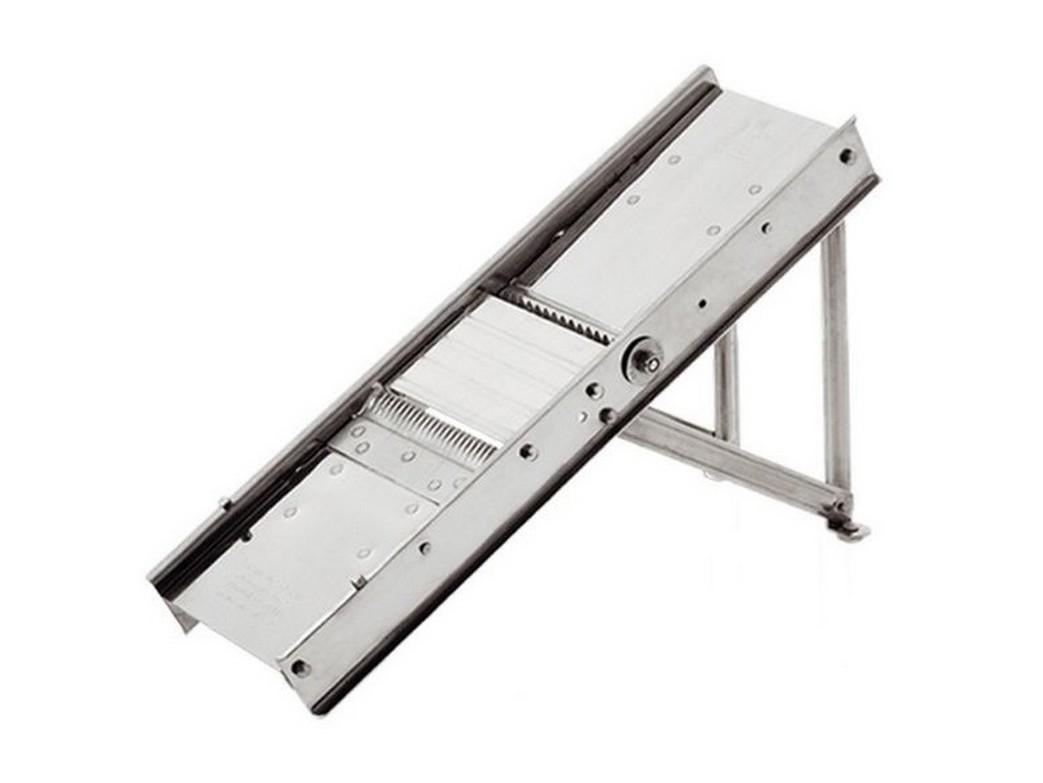 Το μαντολίνο της γαλλικής εταιρείας Le Bron Coucke, είναι ανοξείδωτης κατασκευής και διαθέτει πρακτικό υποστήριγμα και αντιολισθητικές βάσεις. Μαχαίρι με 40+20 λάμες Κόβει σε ράβδους (τηγανιτές πατάτες) 4,5mm, σε julienne 3mm, σε φέτες και ανάγλυφες φέτες (wafer) 1-12μμ. Η λαβή λαχανικών διατίθεται έξτρα.
