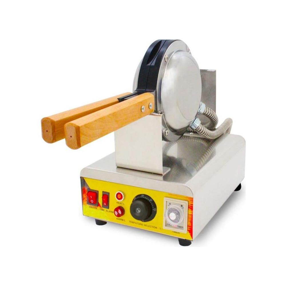 Μονή Βαφλιέρα για βάφλα σε σχήμα κηρήθρα. Ανοξείδωτη κατασκευή με περιστρεφόμενες πλάκες.Εργονομικές ξύλινες λαβές. Διακόπτη λειτουργίας on/off. Θερμοστάτη 0-300ºC. Ενδεικτική λυχνία λειτουργίας. Μηχανικό χρονόμετρο. 1 βάφλα Ø195x170x10mm. Πλάκες αλουμινίου με αντικολλητική επίστρωση.