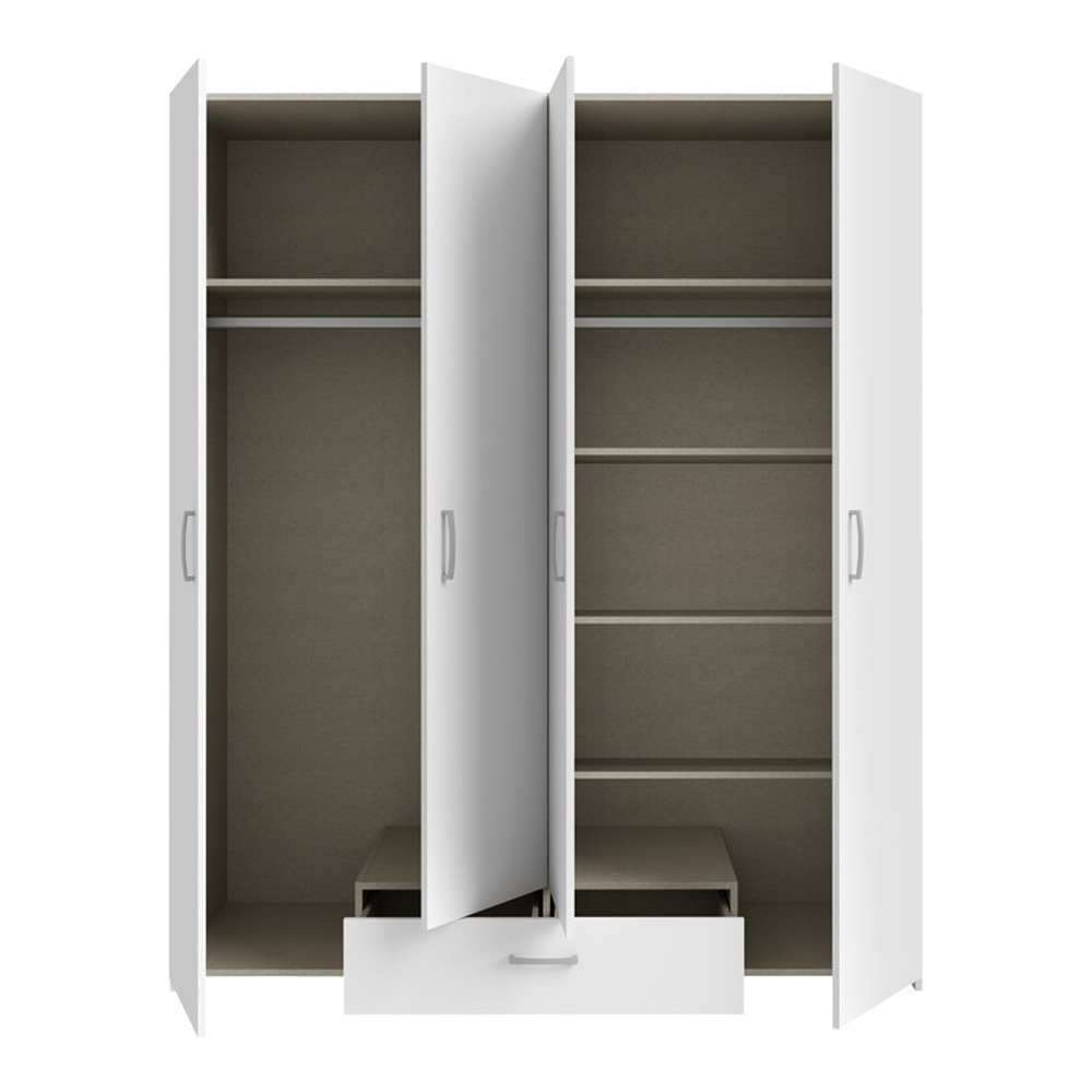 Περιλαμβάνει τέσσερις μεγάλες πόρτες, εσωτερικά φέρει ράγες για κρεμάστρες και κάτω ένα συρτάρι για την αποθήκευση ρούχων και αξεσουάρ.