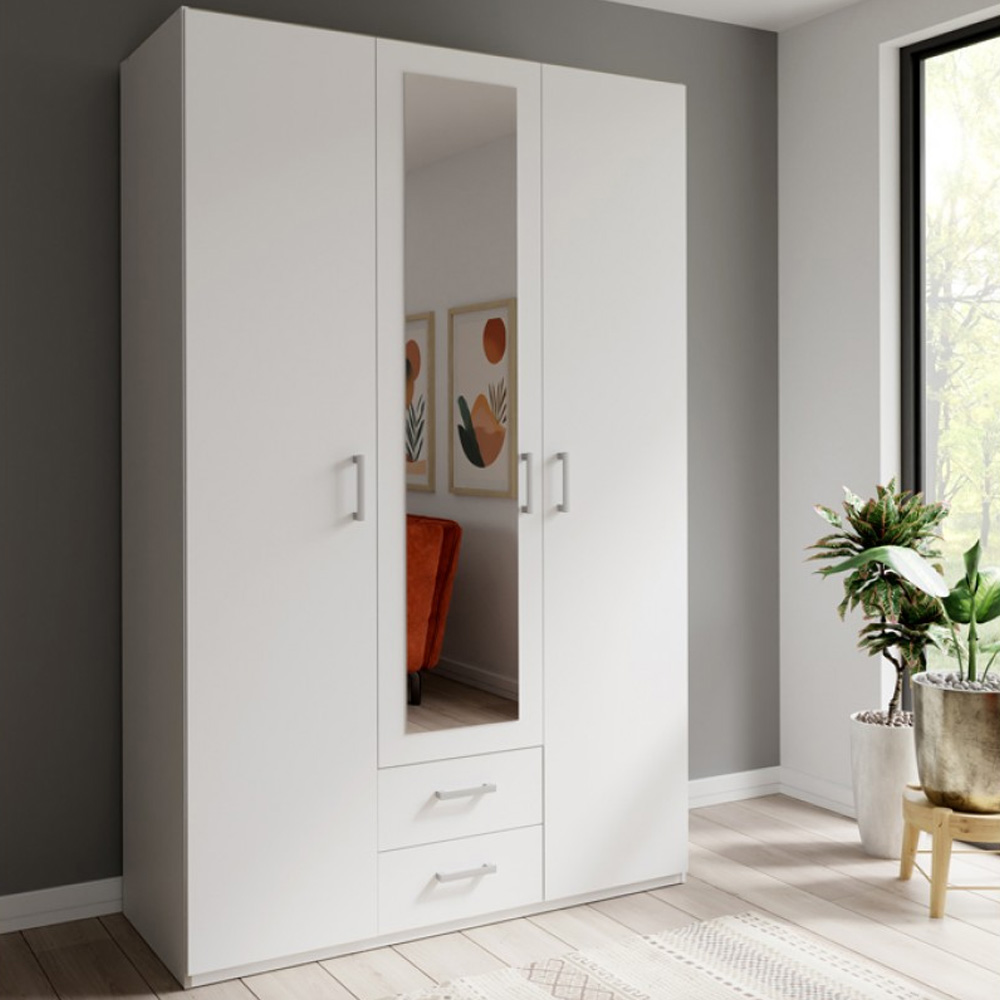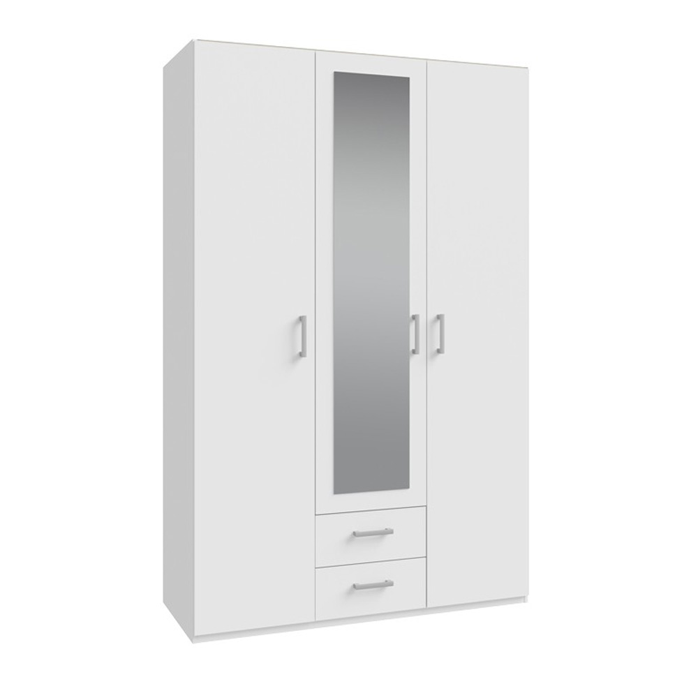 Περιλαμβάνει τρεις πόρτες, εσωτερικά φέρει ράγες για κρεμάστρες και κάτω δύο συρτάρια για την αποθήκευση ρούχων και αξεσουάρ.