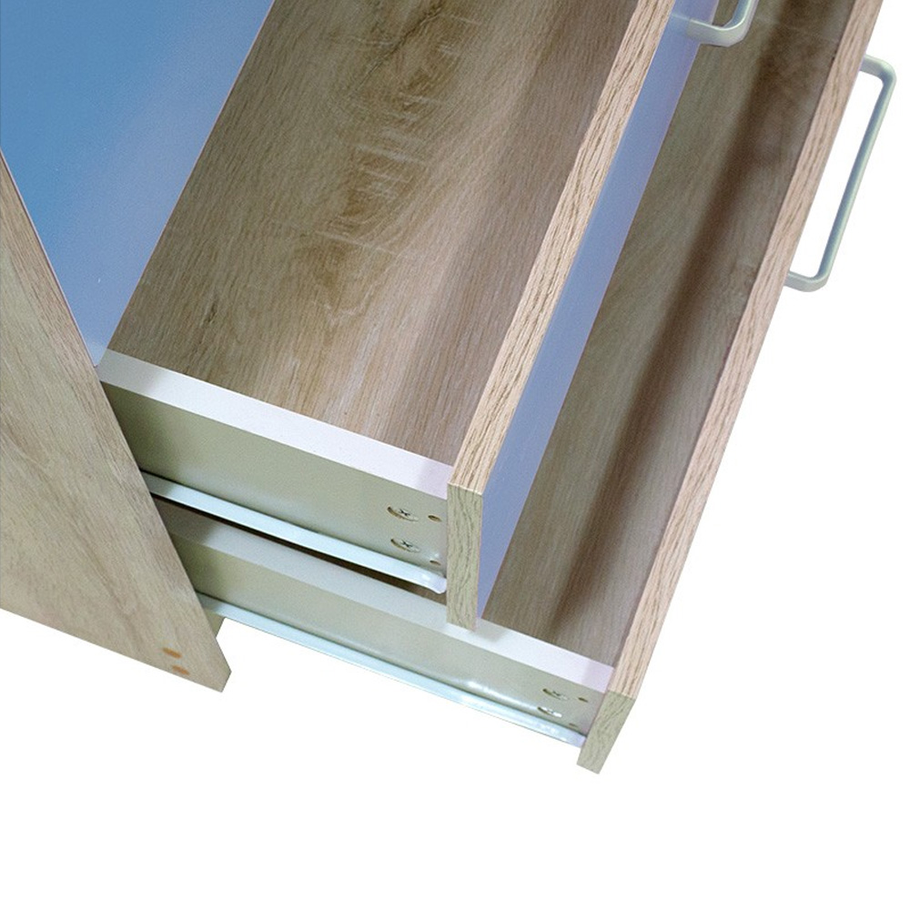 * Σκελετός κατασκευασμένος από μοριασανίδα υψηλής ποιότητας με επένδυση paper wood, με αντοχή στην καταπόνηση, την φθορά και τον χρόνο. Προσφέρεται σε χρώμα castillo – μπλε.