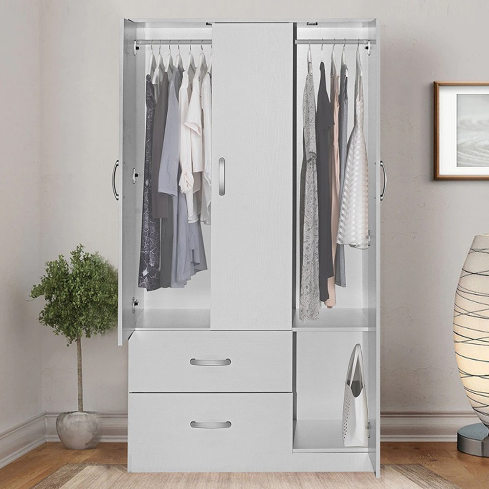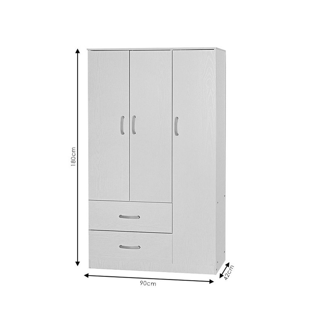 Περιλαμβάνει τρεις μεγάλες πόρτες, εσωτερικά φέρει ράγα για κρεμάστρες και κάτω δύο μεγάλα συρτάρια για την αποθήκευση ρούχων και αξεσουάρ.