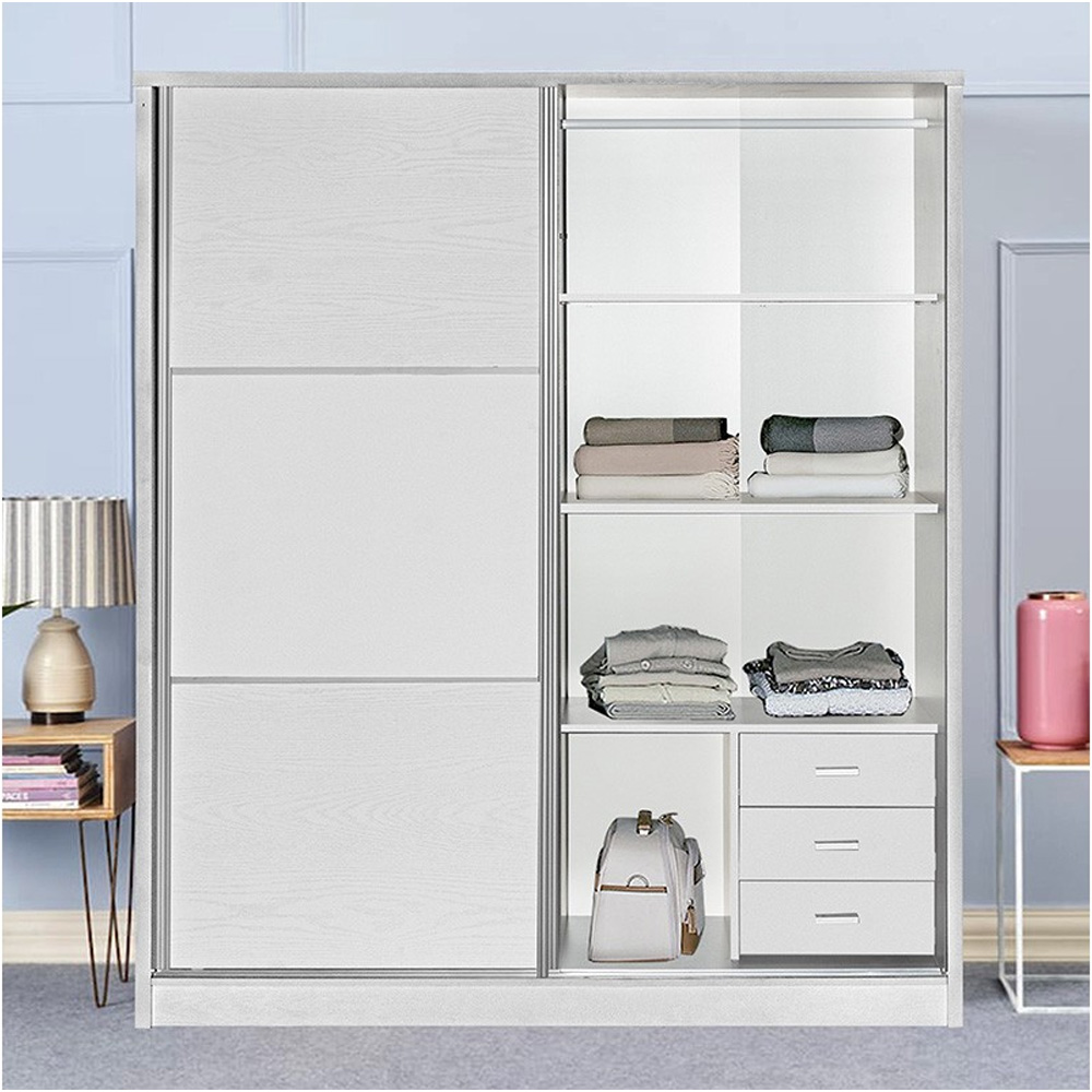 0381862 3 Ντουλάπα ρούχων Chase pakoworld δίφυλλη με συρόμενες πόρτες χρώμα λευκό 152.5x56.5x185εκ