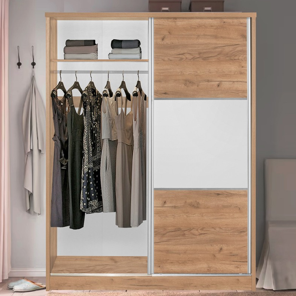 0381863 3 Ντουλάπα ρούχων Chase pakoworld δίφυλλη με συρόμενες πόρτες χρώμα φυσικό 152.5x56.5x185εκ