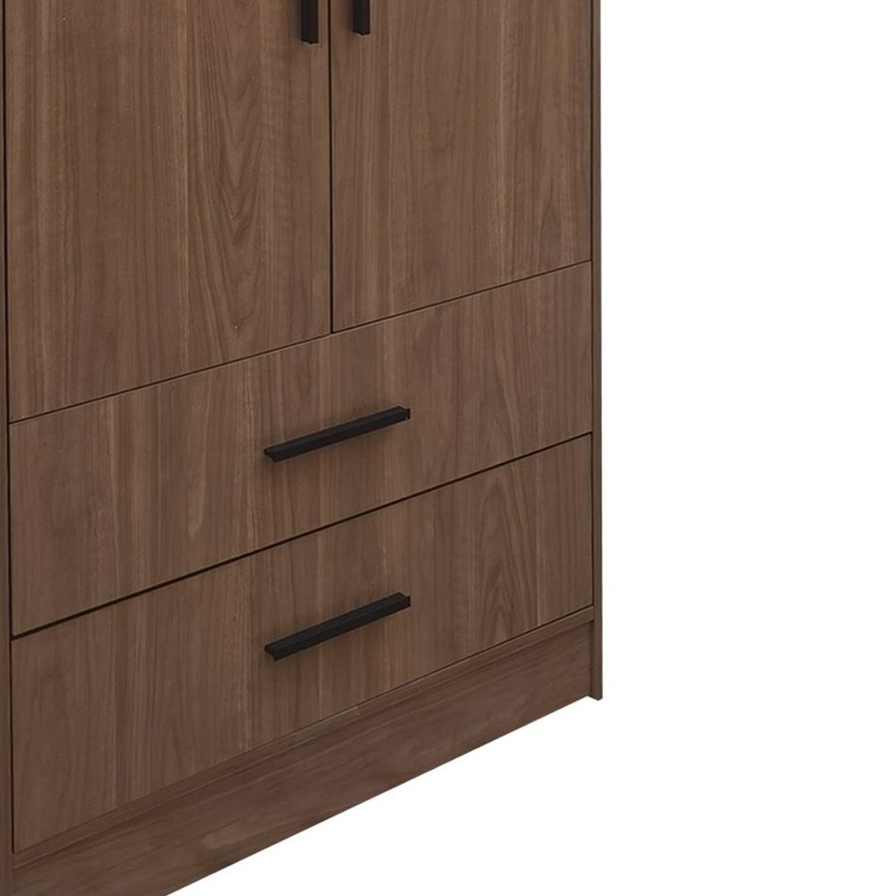 Μια λειτουργική και κομψή επιλογή για την αποθήκευση και οργάνωση των ρούχων σας είναι η ντουλάπα ρούχων Edritte. Δίνει την δυνατότητα να οργανώσετε και να κρεμάσετε τα ρούχα σας, ενώ παράλληλα περιλαμβάνει συρτάρια που παρέχουν επιπλέον αποθηκευτικό χώρο για τα προσωπικά σας αντικείμενα. Το καρυδί της χρώμα είναι κλασικό και ευπροσάρμοστο σε διάφορα στυλ διακόσμησης.