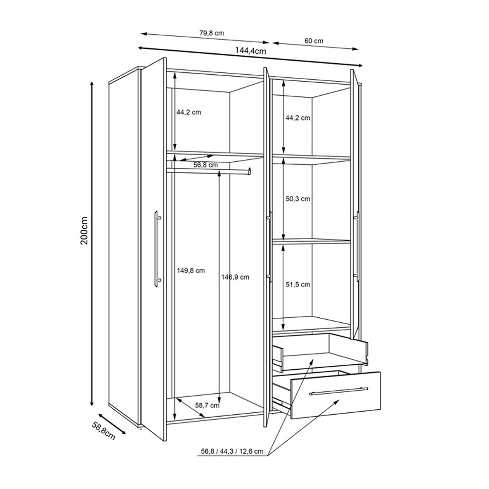 0381855 4 Ντουλάπα ρούχων Razol pakoworld τρίφυλλη λευκό-sonoma μελανίνης 144.5x59x200εκ