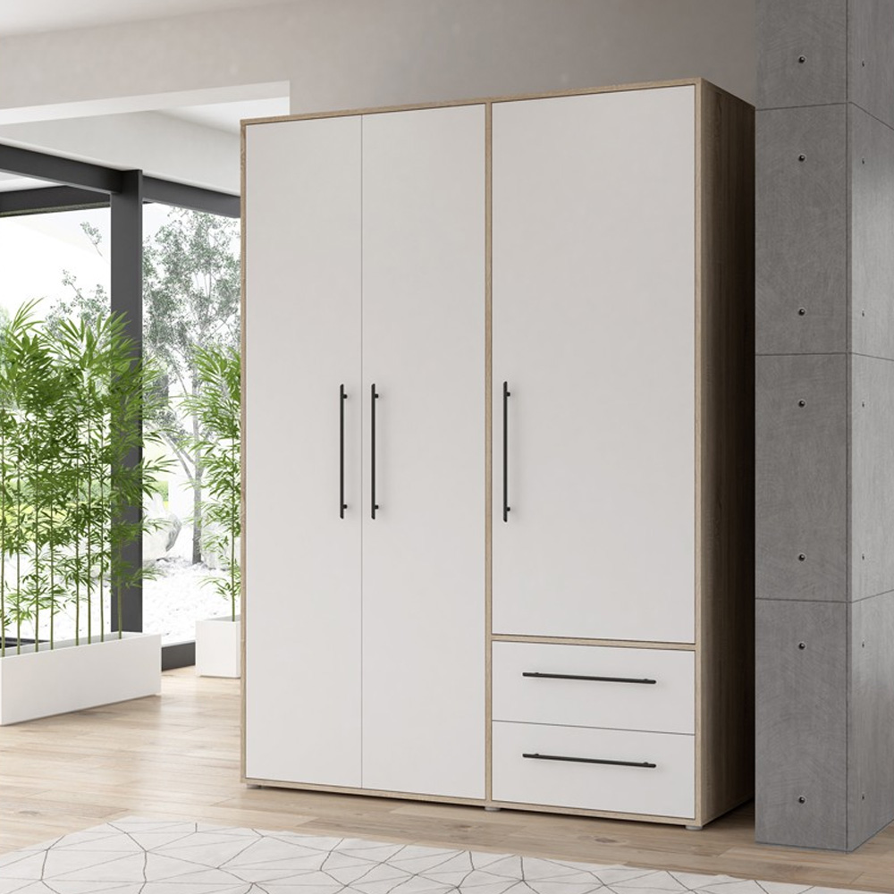 0381855 1 Ντουλάπα ρούχων Razol pakoworld τρίφυλλη λευκό-sonoma μελανίνης 144.5x59x200εκ