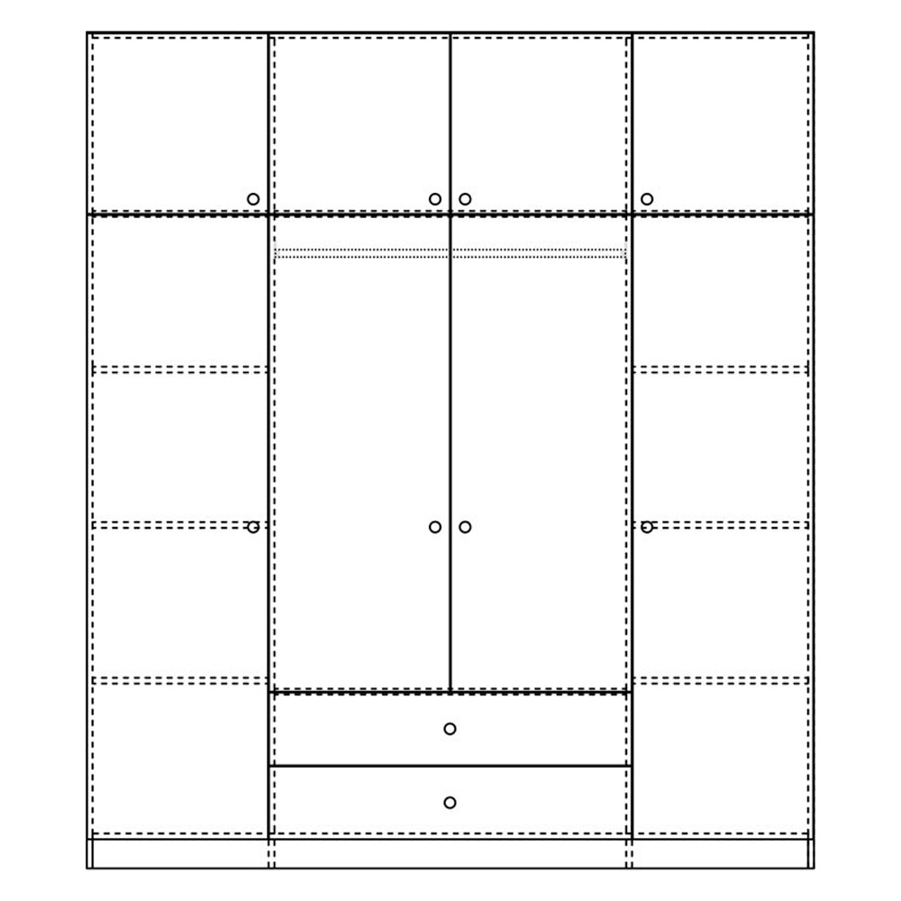 Περιλαμβάνει: Μία κεντρική διπλή ντουλάπα, εσωτερικά έχει μία μεγάλη μεταλλική βέργα για κρεμάστρες. Στο κάτω μέρος φέρει δύο πρακτικά συρόμενα συρτάρια για την αποθήκευση ρούχων και αξεσουάρ.