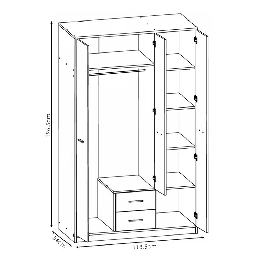 Ντουλάπα ρούχων Serenity pakoworld τρίφυλλη sonoma-λευκό 118.5x54x196.5εκ