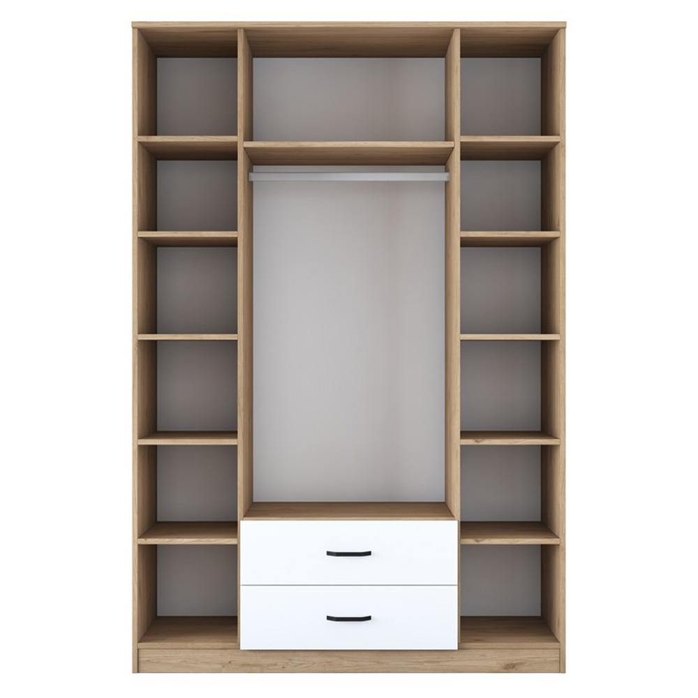 * Φέρει τέσσερα ανοιγόμενα φύλλα και δύο συρτάρια στο κάτω μέρος για κλειστή αποθήκευση ρούχων και αξεσουάρ.