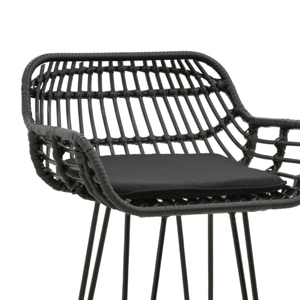 Κυρίως επιφάνεια καρέκλας από PE rattan. Το PE rattan είναι ένα είδος οικολογικού συνθετικού rattan, ανακυκλώσιμο και με μεγαλύτερη ανθεκτικότητα σε σχέση με τα άλλα είδη.