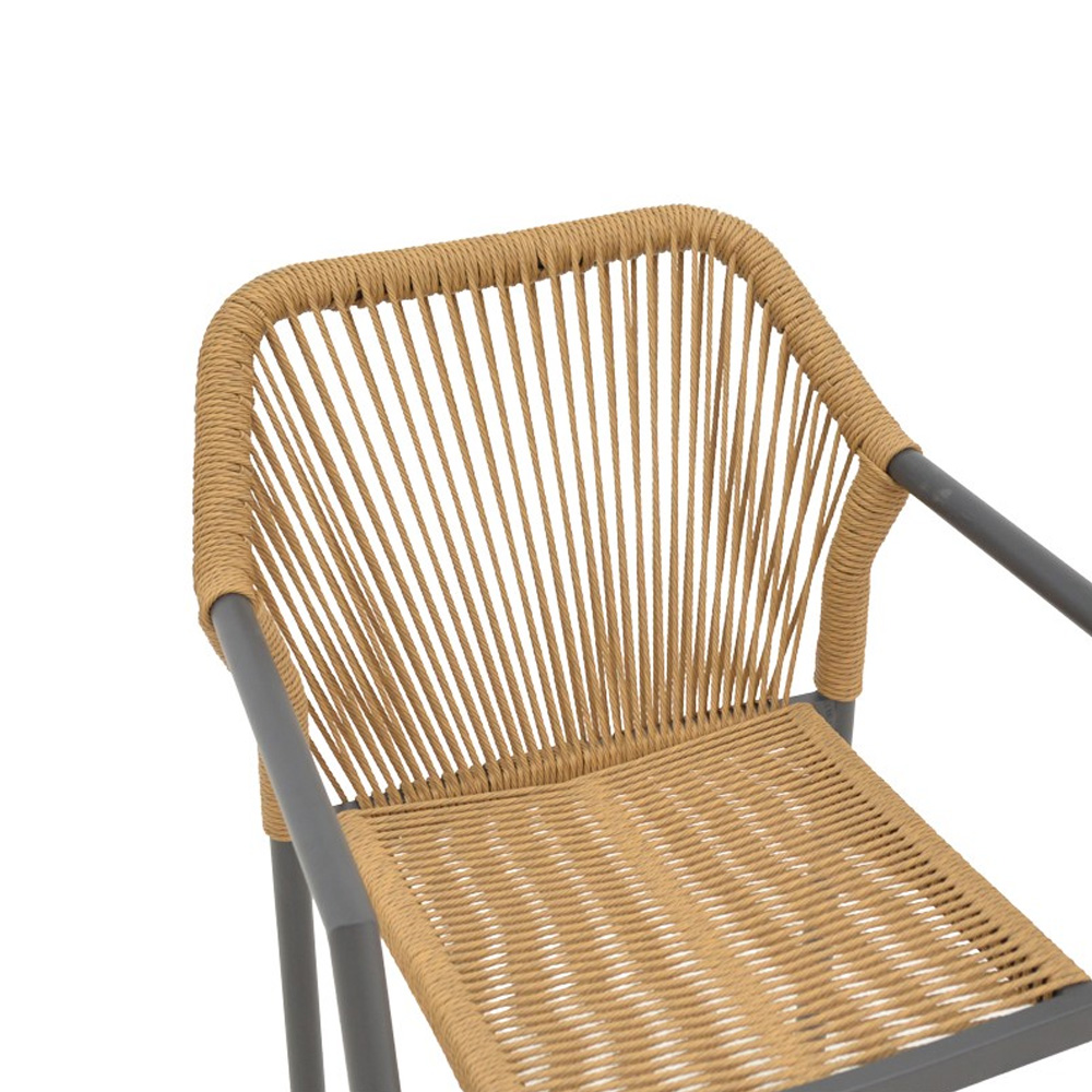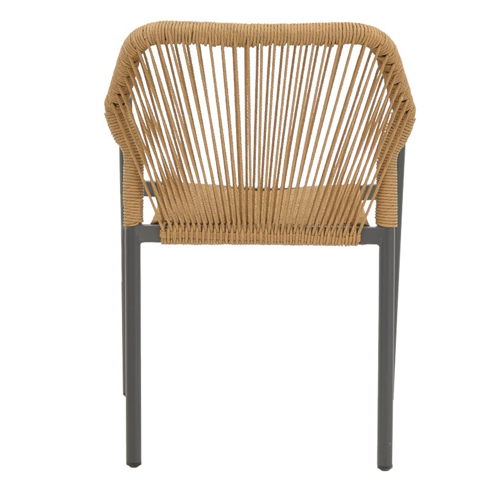 * Κυρίως σώμα καρέκλας από ρατάν. Η κύρια ιδιότητα του ράταν είναι η ευελιξία του, καθώς μπορεί να πλεκτεί και να διαμορφωθεί εύκολα. Επίσης, είναι ανθεκτικό και αντέχει στις καιρικές συνθήκες, καθιστώντας το ιδανικό για επιπλέον εξωτερικούς χώρους.