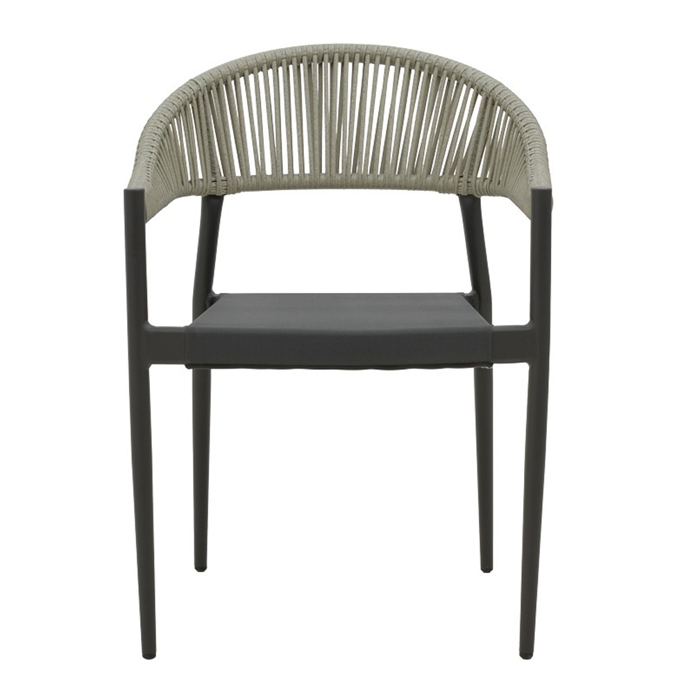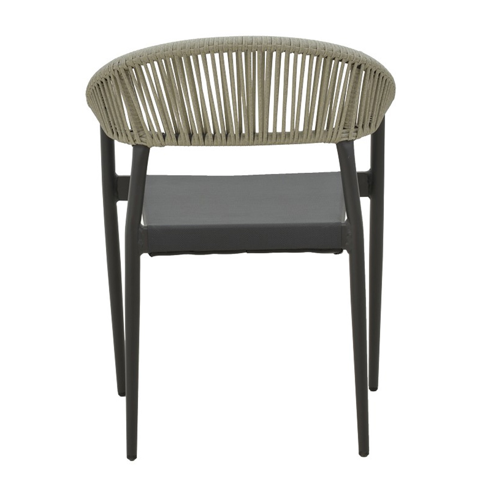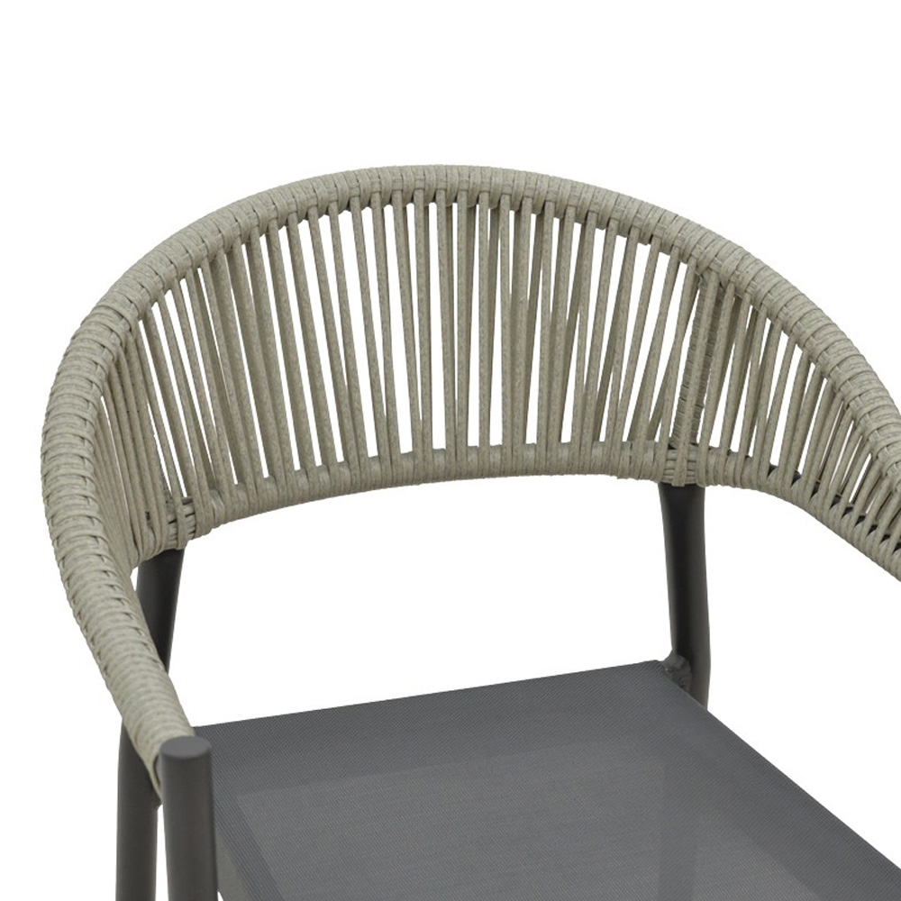 * Κυρίως σώμα καρέκλας από εξαιρετικής ποιότητας mesh ύφασμα και ρατάν. Η κύρια ιδιότητα του ράταν είναι η ευελιξία του, καθώς μπορεί να πλεκτεί και να διαμορφωθεί εύκολα. Επίσης, είναι ανθεκτικό και αντέχει στις καιρικές συνθήκες, καθιστώντας το ιδανικό για επιπλέον εξωτερικούς χώρους. Το ύφασμα mesh είναι ένας τύπος υφάσματος που χαρακτηρίζεται από την άνοιγμά του, δηλαδή την ύπαρξη μικρών οπών ή δικτυών που επιτρέπουν τη διέλευση αέρα και φωτός.