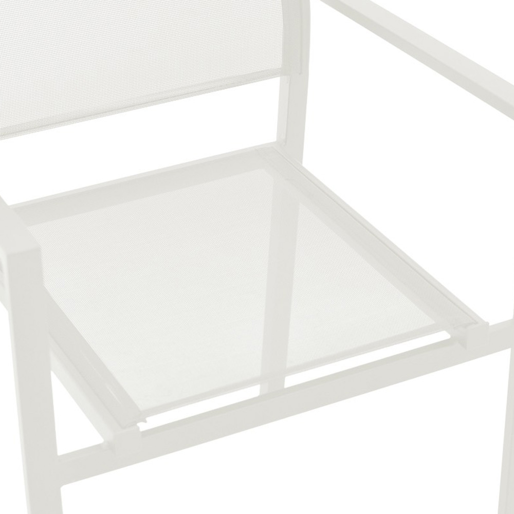 Επένδυση καθίσματος με εξαιρετικής ποιότητας ύφασμα textilene. Το textilene είναι πλενόμενο και ανθεκτικό στις συνθήκες του εξωτερικού πέριβάλλοντος (ηλιακή ακτινοβολία, υγρασία).