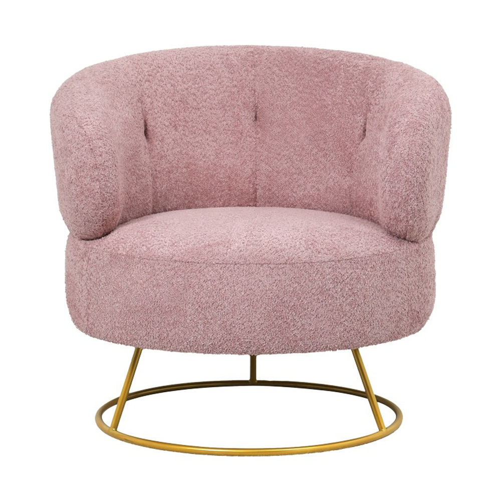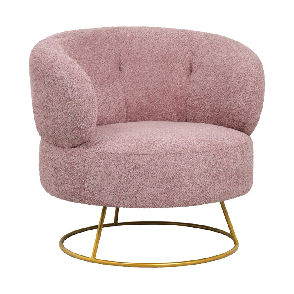 0381243 1 Πολυθρόνα Σαλονιού Connie Με Μπουκλέ Ύφασμα Ροζ - Χρυσό