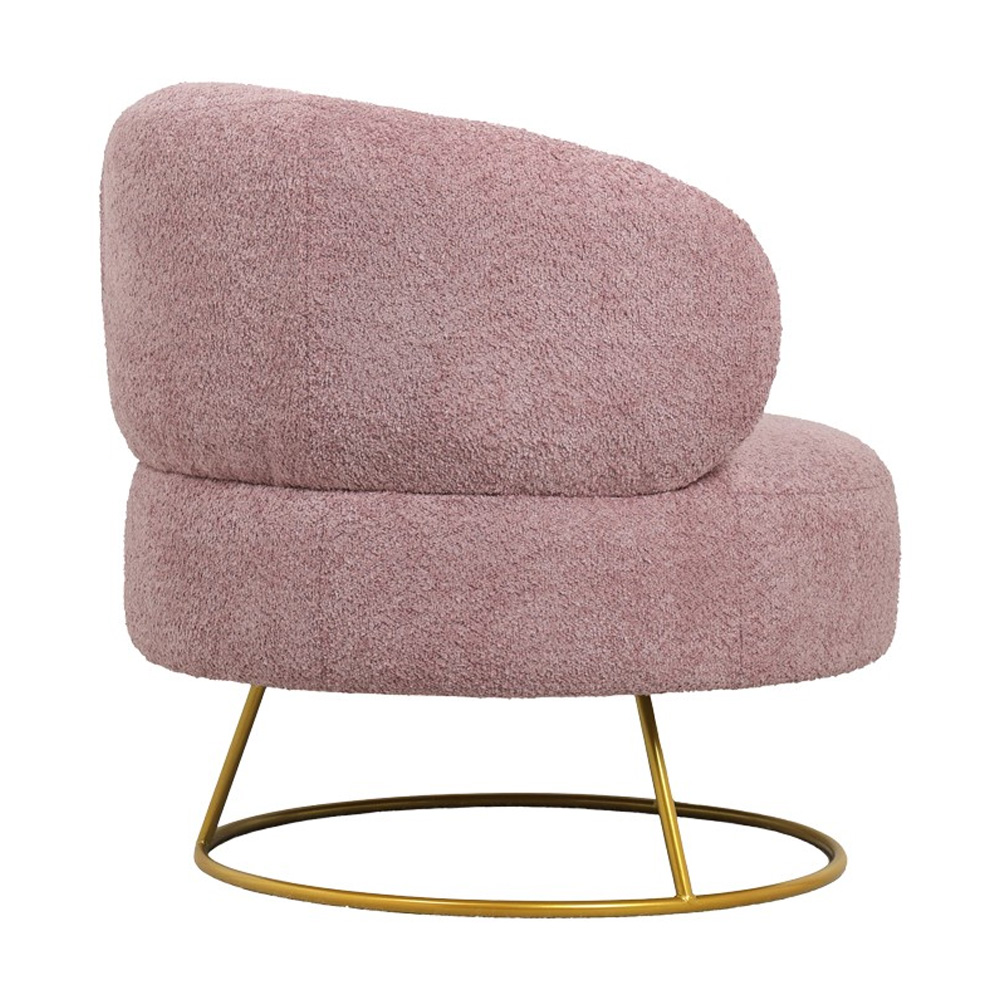 0381243 5 Πολυθρόνα Σαλονιού Connie Με Μπουκλέ Ύφασμα Ροζ - Χρυσό