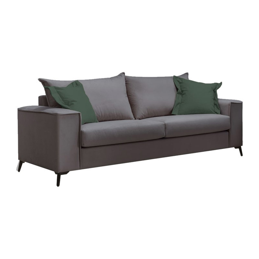 -Χρώμα καναπέ και μαξιλαριών πλάτης: Ανθρακί – Φέρει δύο διακοσμητικά μαξιλαράκια σε κυπαρισσί χρώμα.