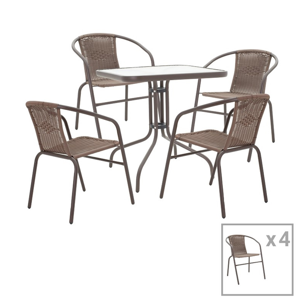 Σετ Τραπεζαρία Κήπου 5τμχ Ensure-Obbi Μεταλλικό Καφέ