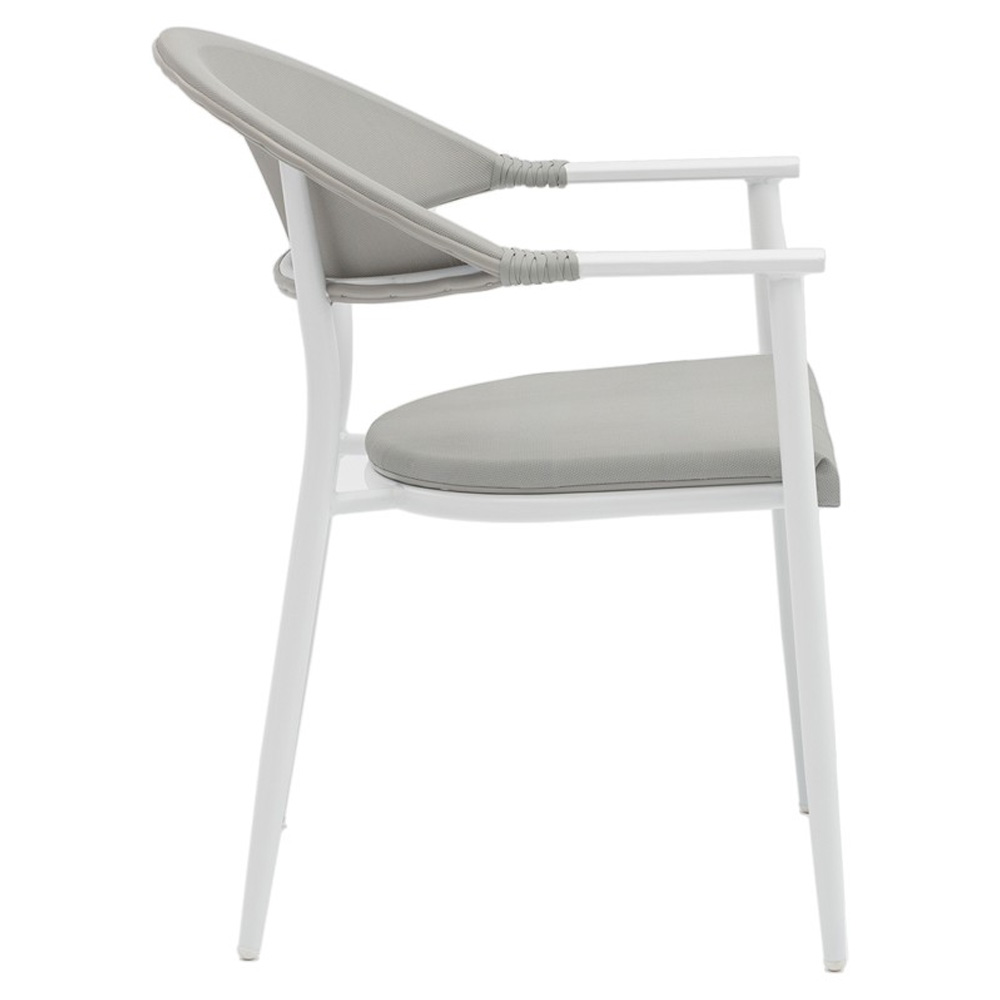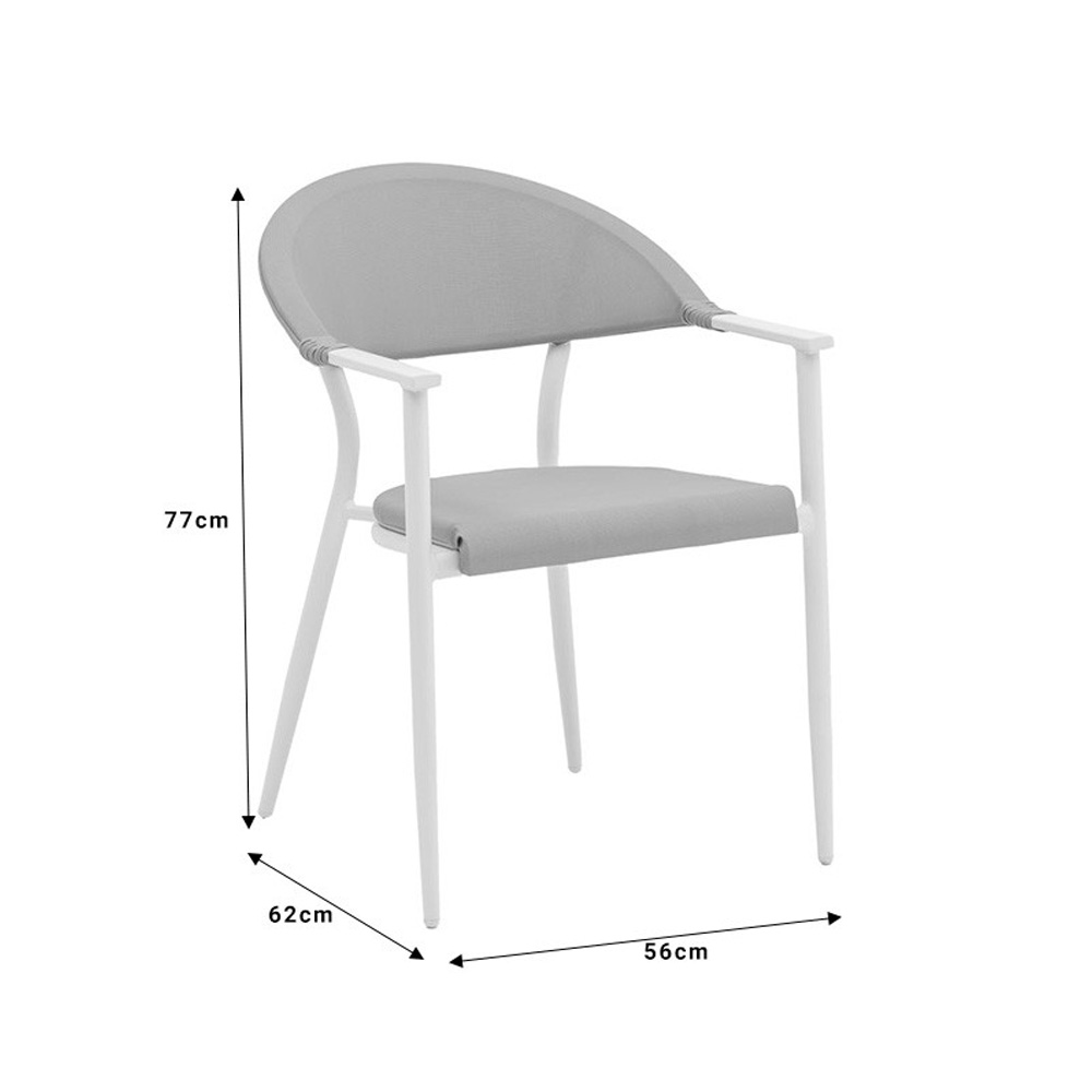 Σταθερός σκελετός από εξαιρετικής ποιότητας αλουμίνιο (Dia.28xT1.5mm) με αντοχή στην καταπόνηση και στη φθορά. Κυρίως σώμα καρέκλας από εξαιρετικής ποιότητας textilene. Το textilene είναι ύφασμα μεγάλης αντοχής στην ηλιακή ακτινοβολία και την υγρασία ενώ παράλληλα αφήνει το δέρμα να “αναπνέει” δημιουργώντας έτσι άνεση στο κάθισμα.