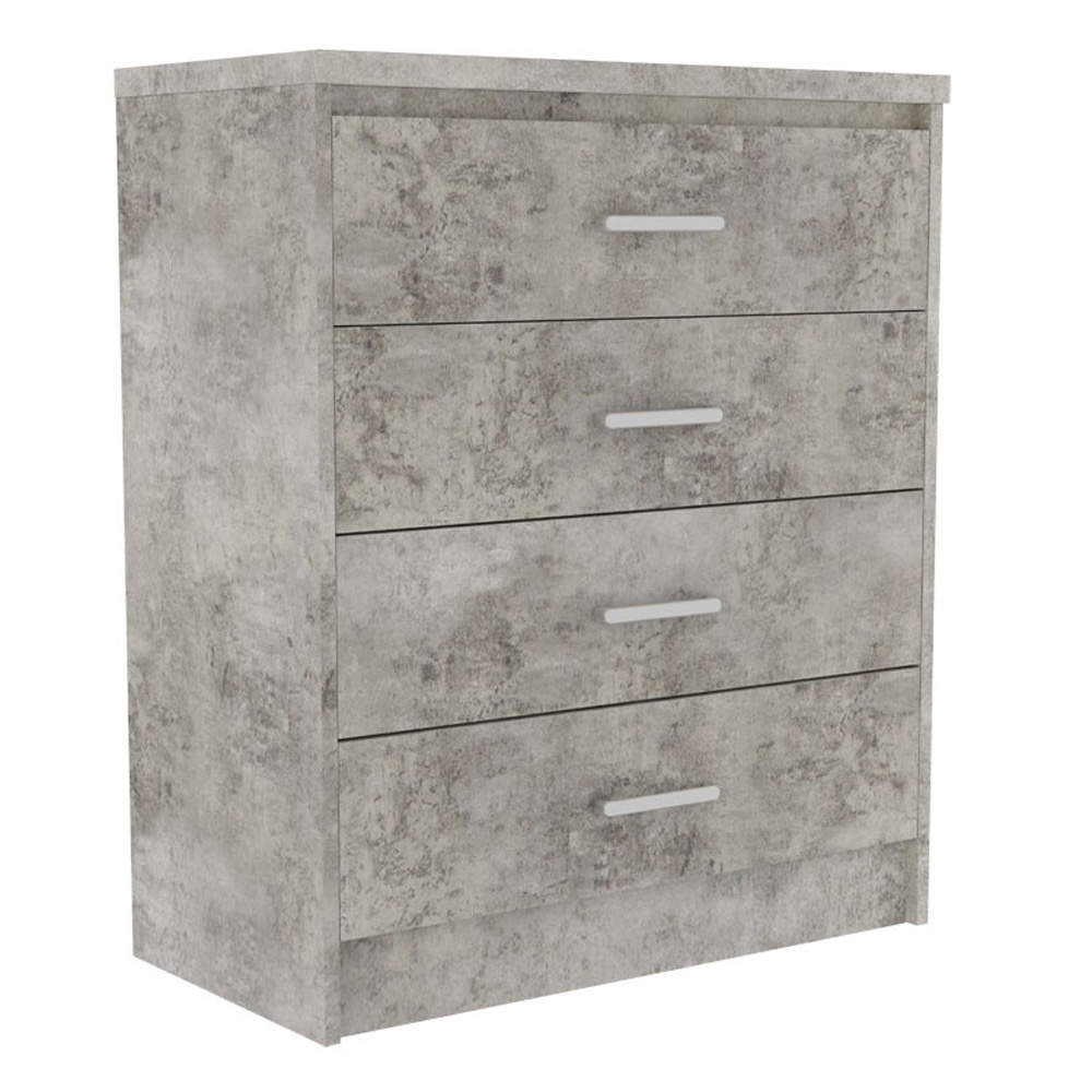 Φέρει τέσσερα μεγάλα συρόμενα συρτάρια σε σκούρη απόχρωση.