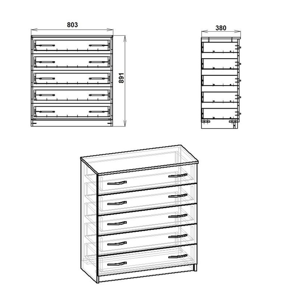 * Περιλαμβάνει πέντε συρόμενα συρτάρια, προσφέροντας μεγάλο χώρο για την αποθήκευση και φύλαξη των αγαπημένων σας ρούχων και αξεσουάρ.
