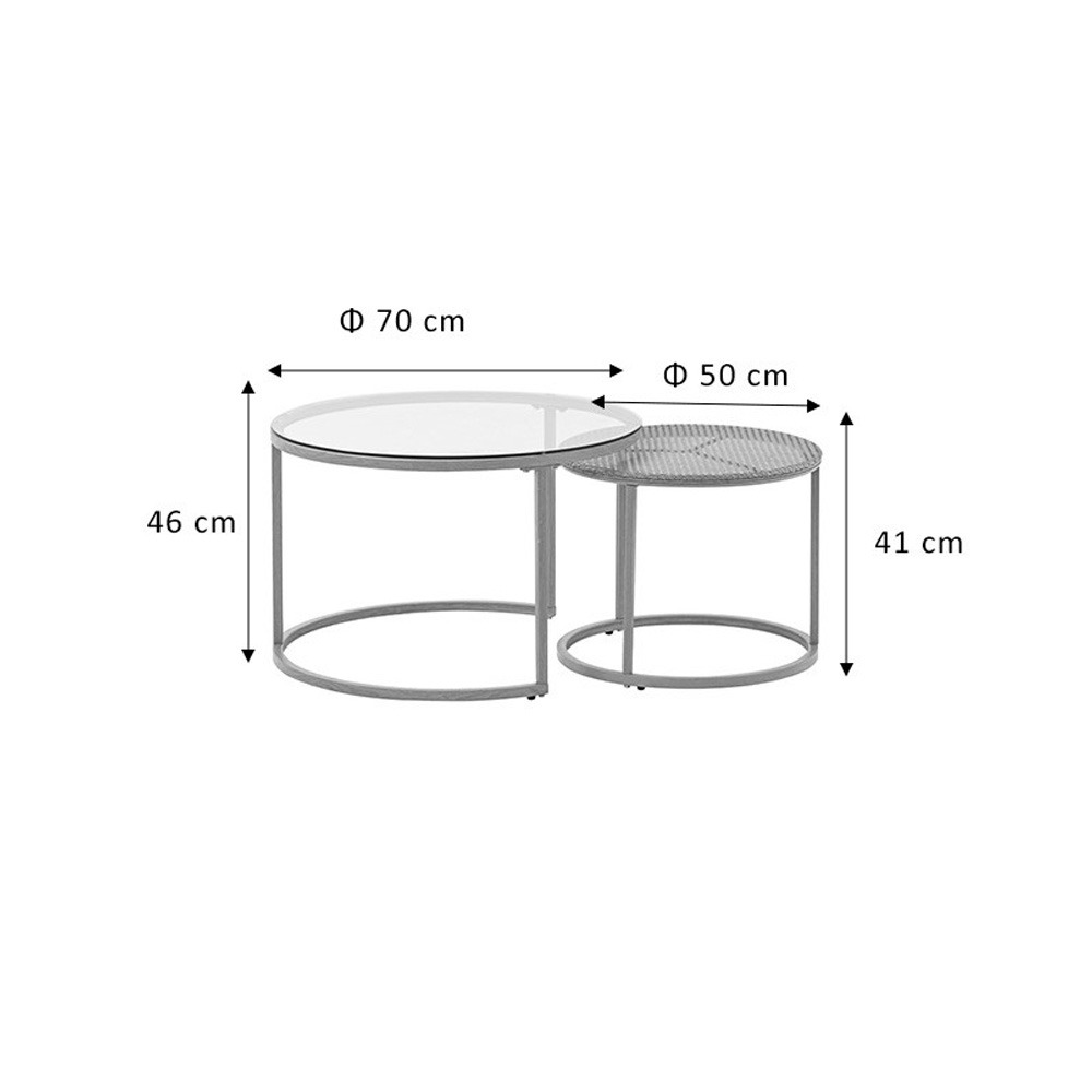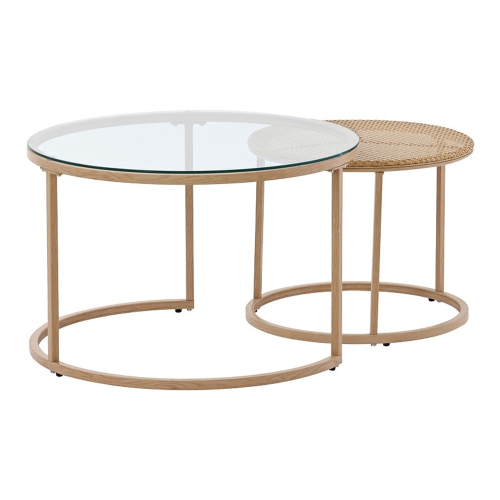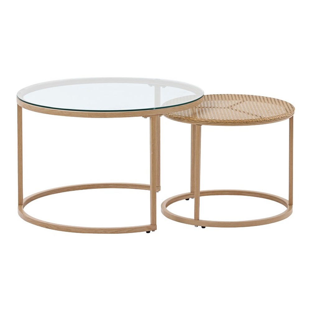 Τραπέζια σαλονιού Beatrice pakoworld σετ 2τεμ γυαλί-φυσικό rattan-φυσικό μέταλλο
