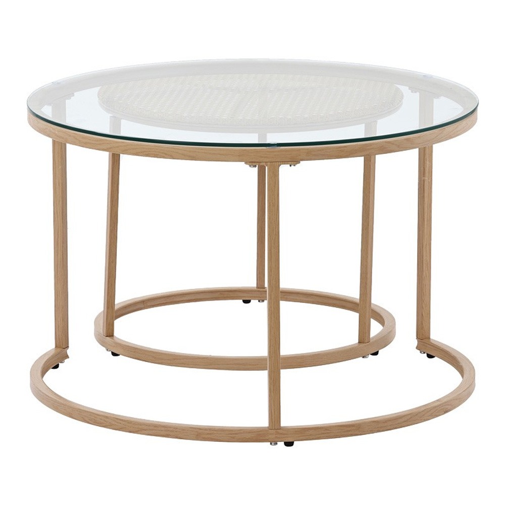 0381443 6 Τραπέζια σαλονιού Beatrice pakoworld σετ 2τεμ γυαλί-φυσικό rattan-φυσικό μέταλλο