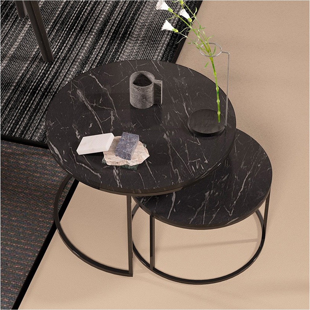 Τραπέζι σαλονιού Drion pakoworld μαύρο μαρμάρου μελαμίνης-μαύρο μέταλλο Φ60×40εκ